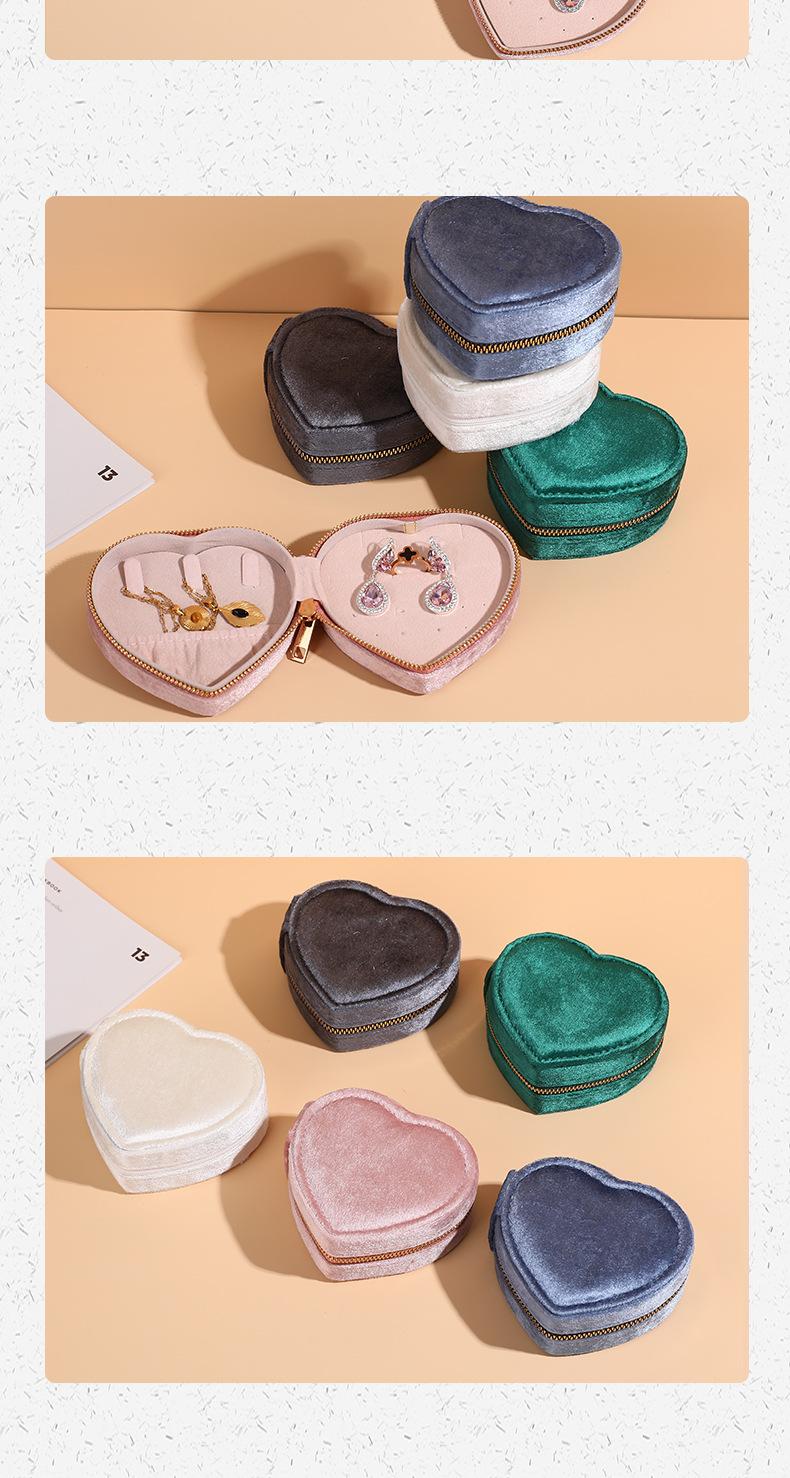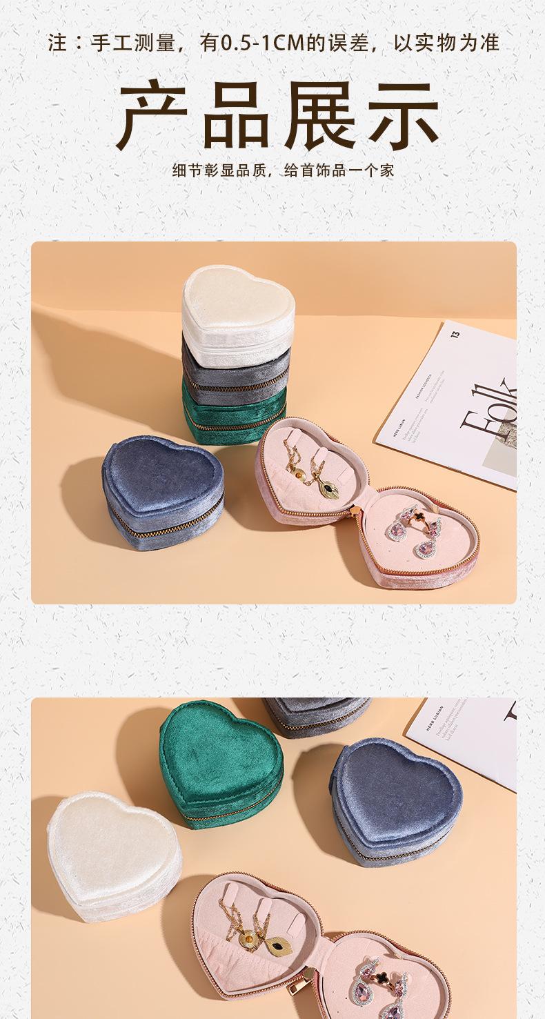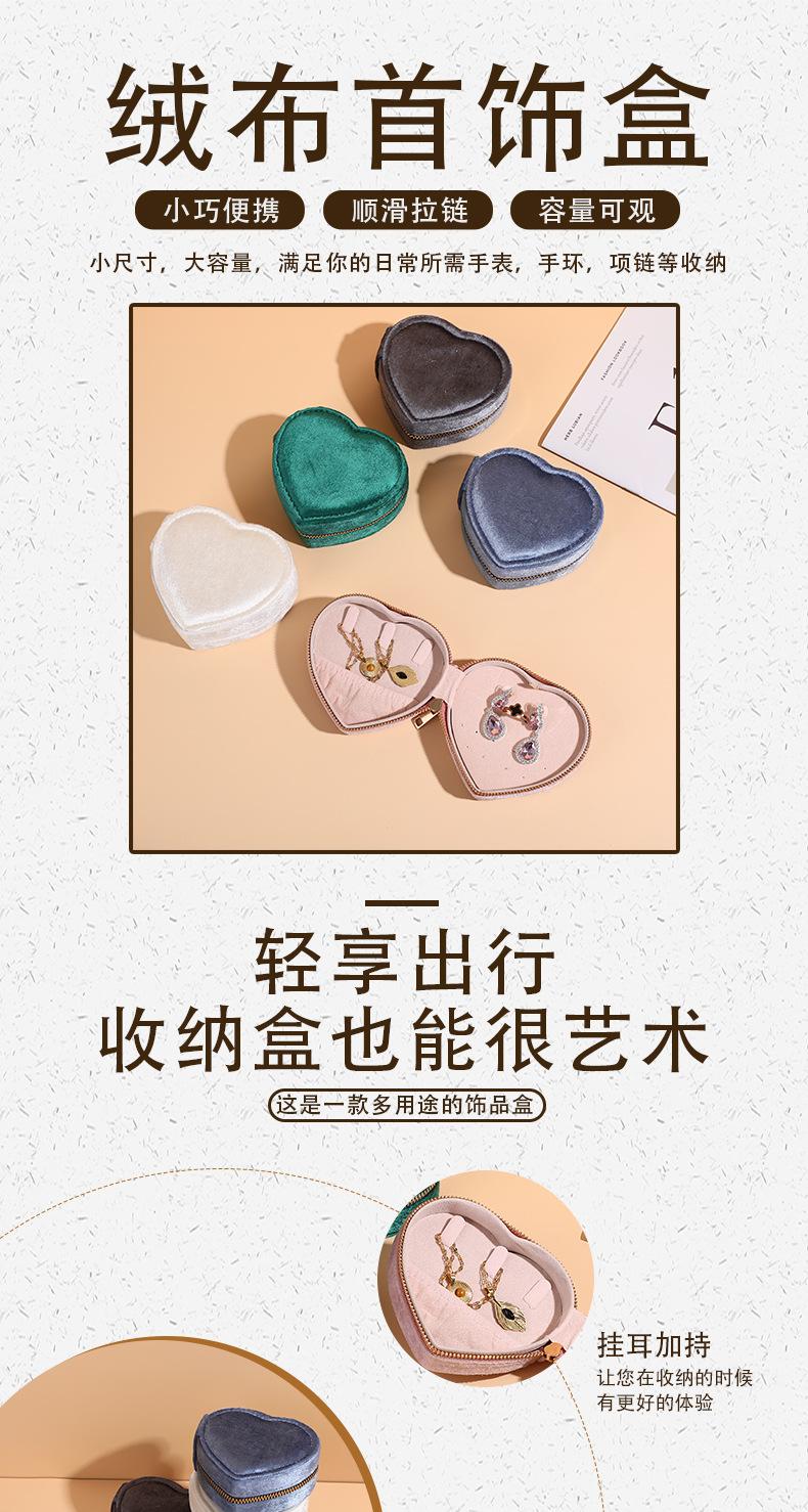 Nueva Caja de Almacenamiento de Joyas Flip Amor Franela Caja de Joyas Aretes Anillo Caja de Joyas Portátil con Cremallera