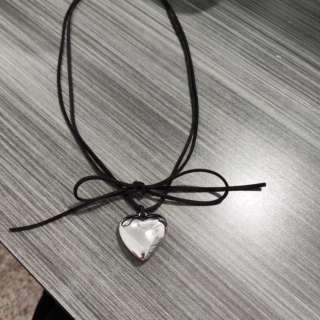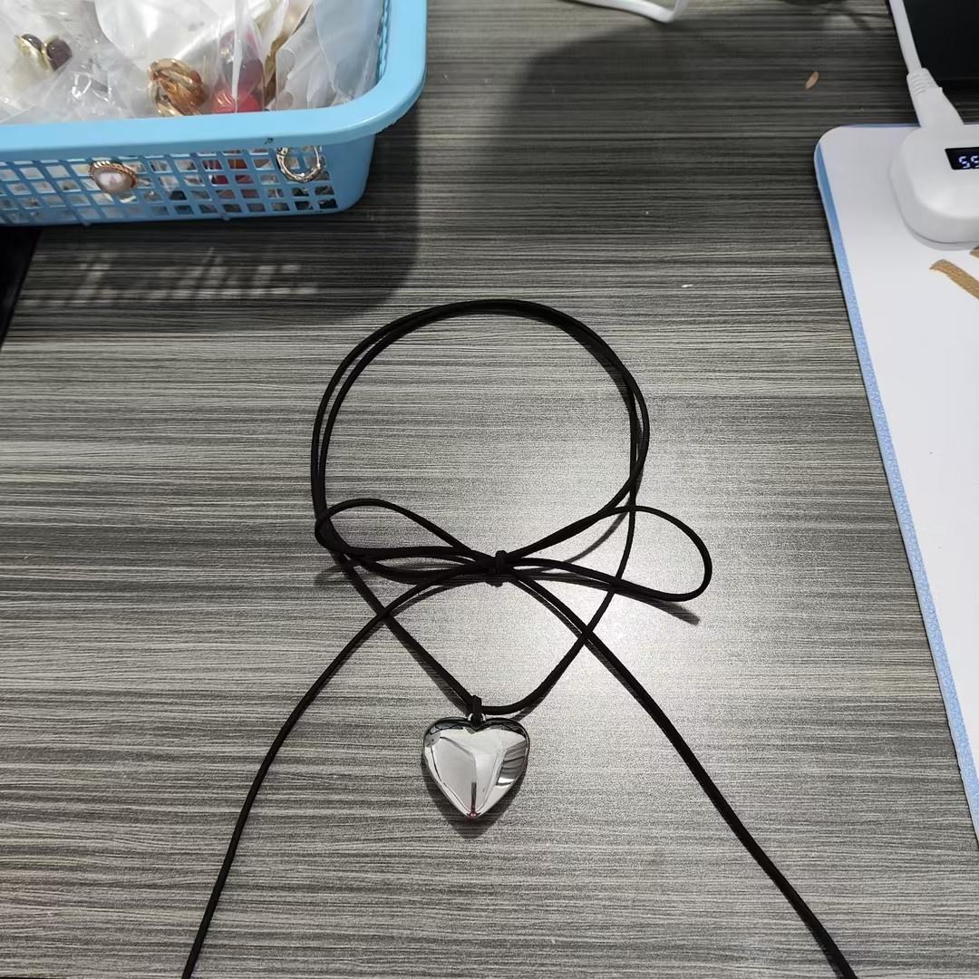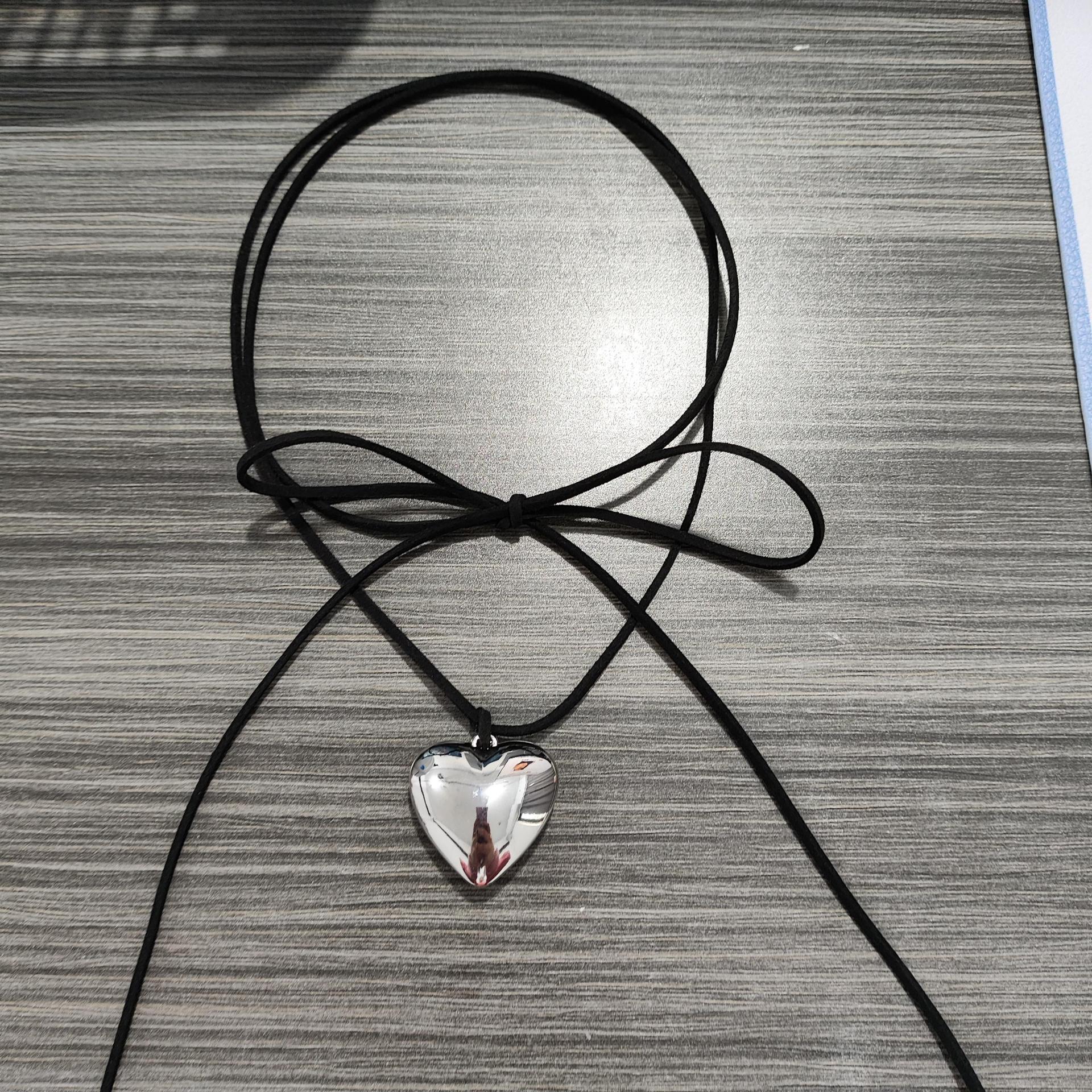 Gargantilla de franela ajustable con tirador transfronterizo de joyería europea y americana para mujer, collar con colgante de corazón grande con personalidad sencilla