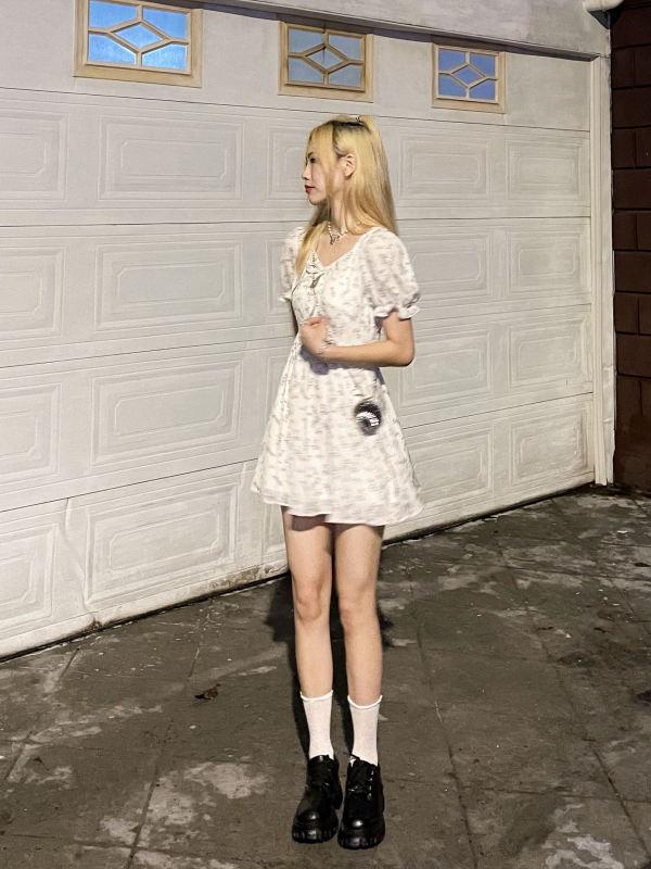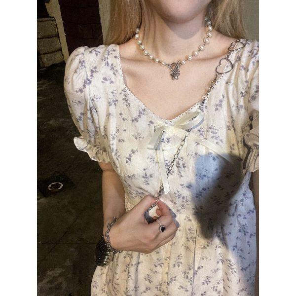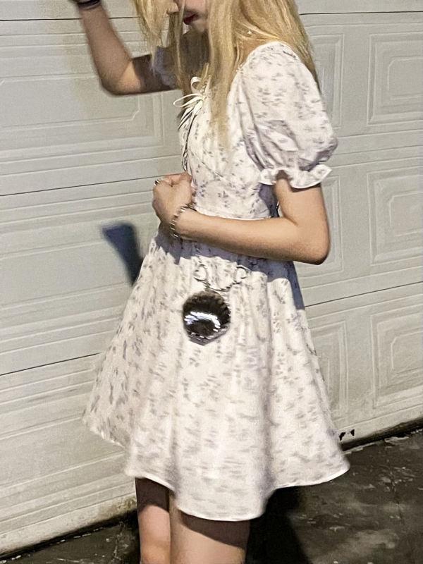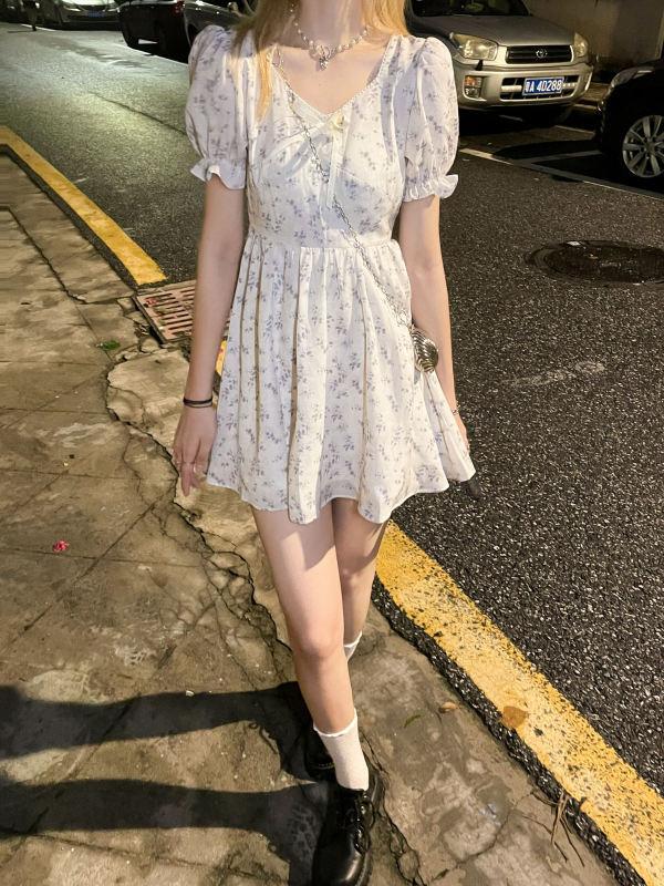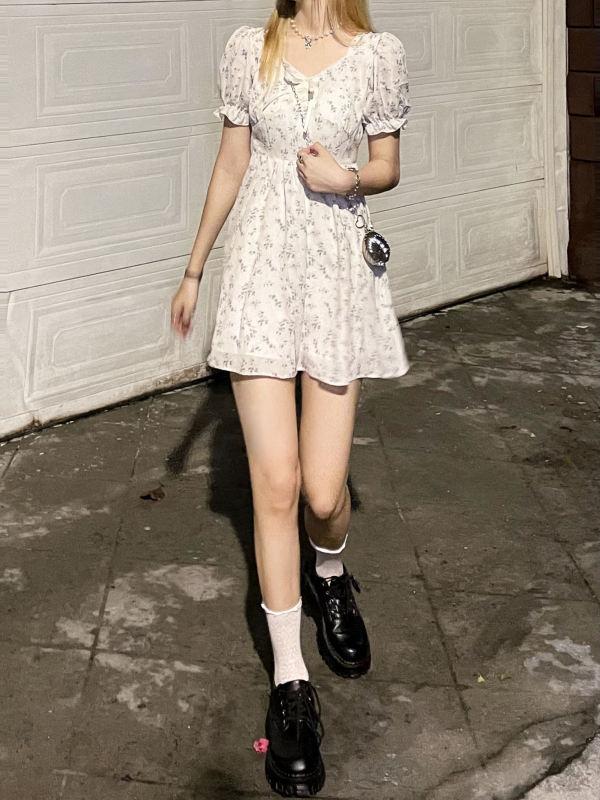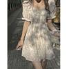Vestido floral coreano suave de verano 2022, nuevo, para mujer, con mangas abullonadas francesas, cintura adelgazante, venta al por mayor transfronteriza
