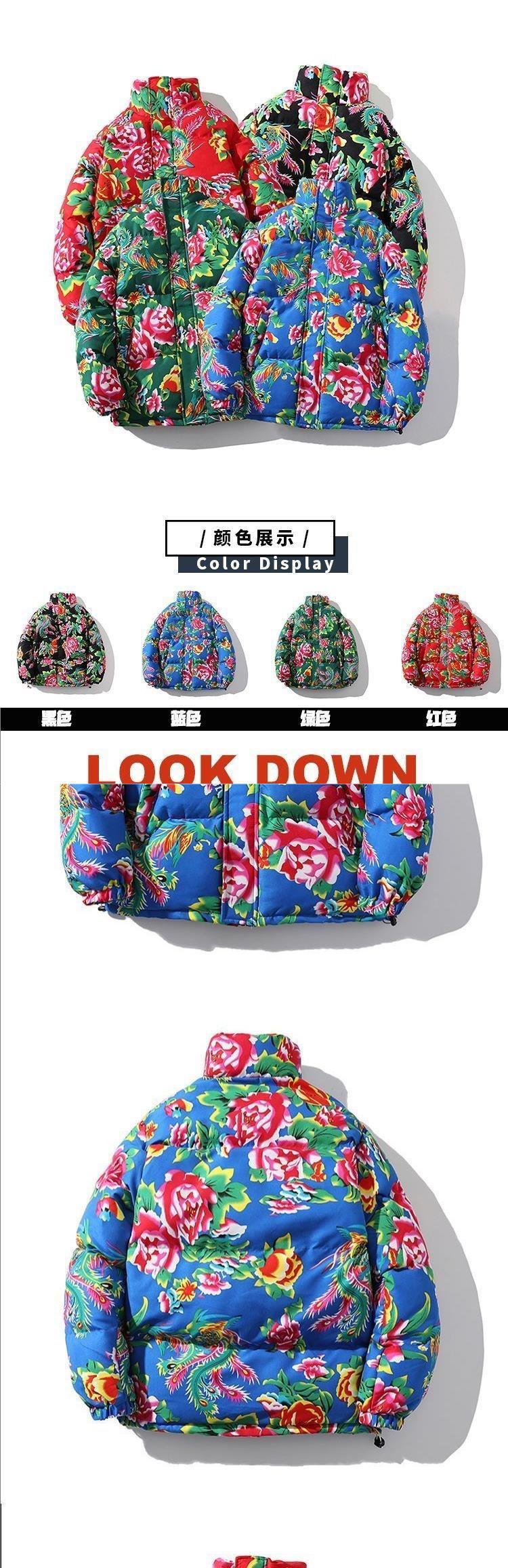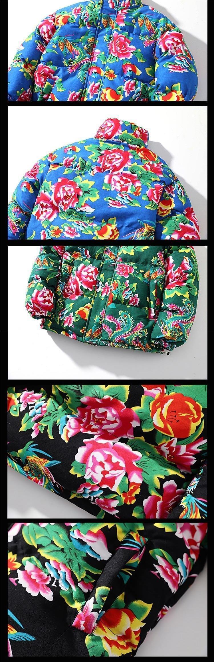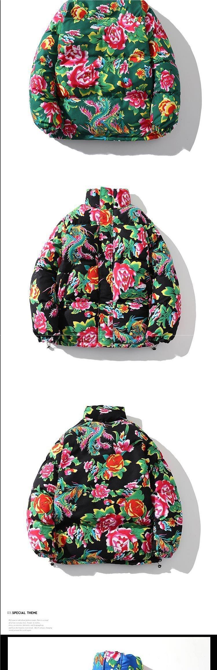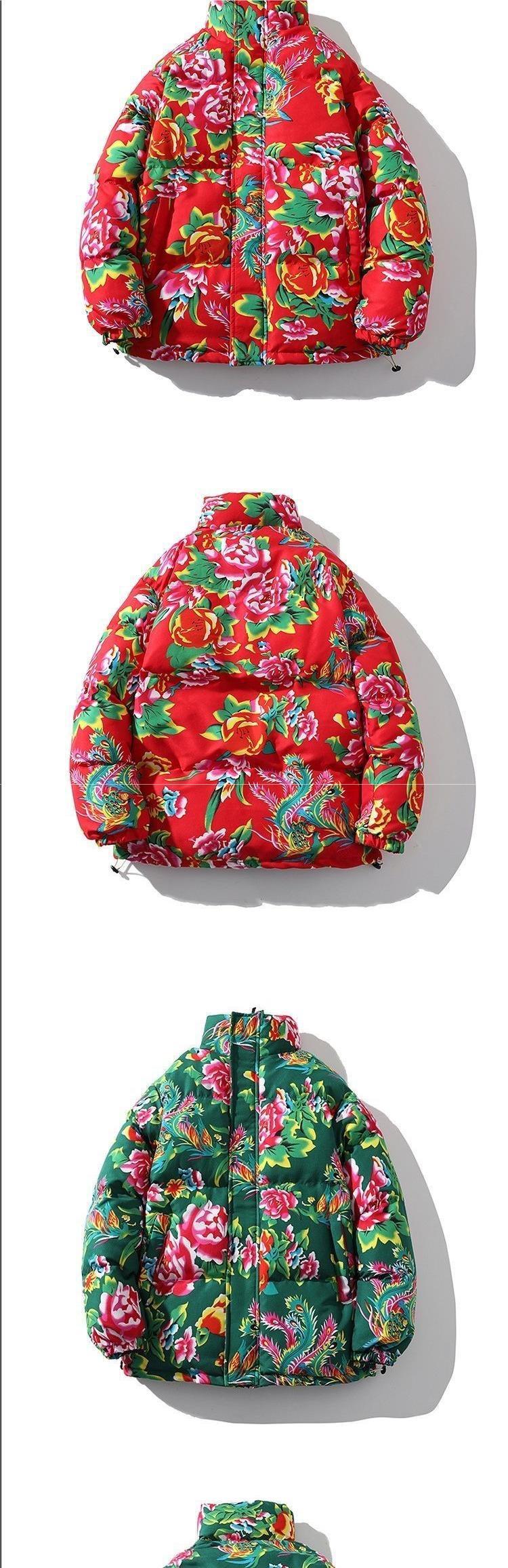 Chaqueta acolchada de algodón con flores grandes del noreste para hombres y mujeres, moda nacional, estilo chino, chaqueta acolchada de algodón gruesa con flores de peonía, abrigo cálido de invierno de gran tamaño