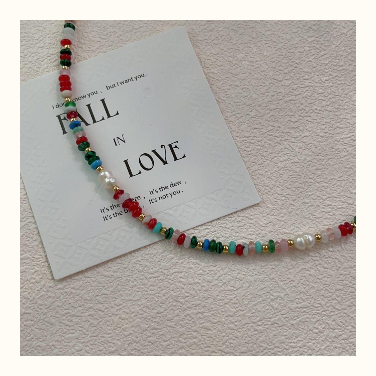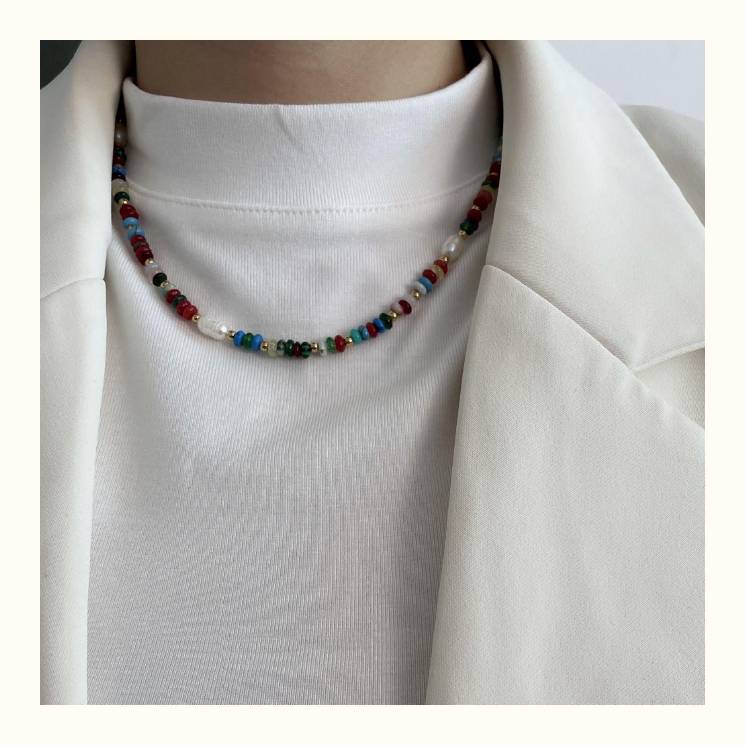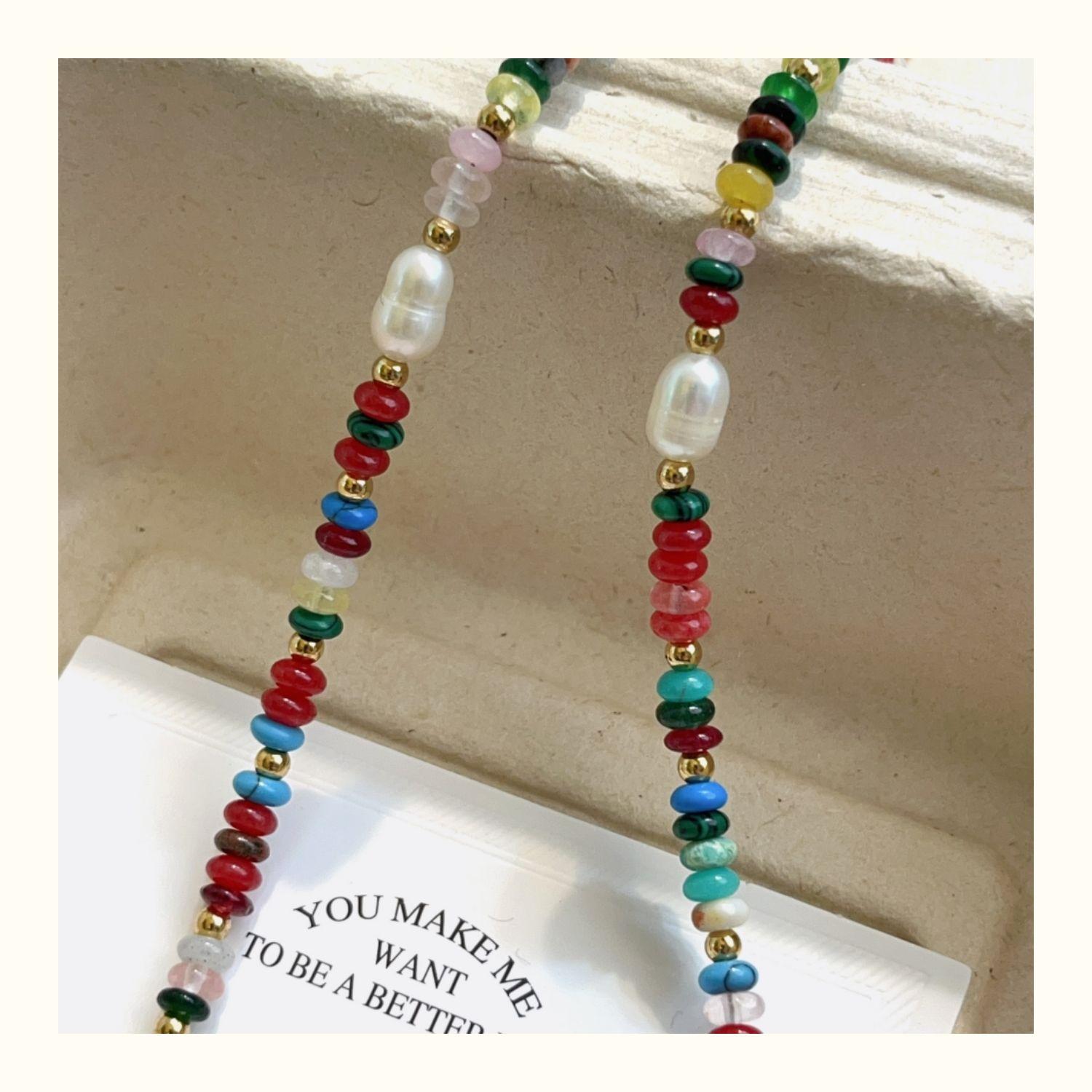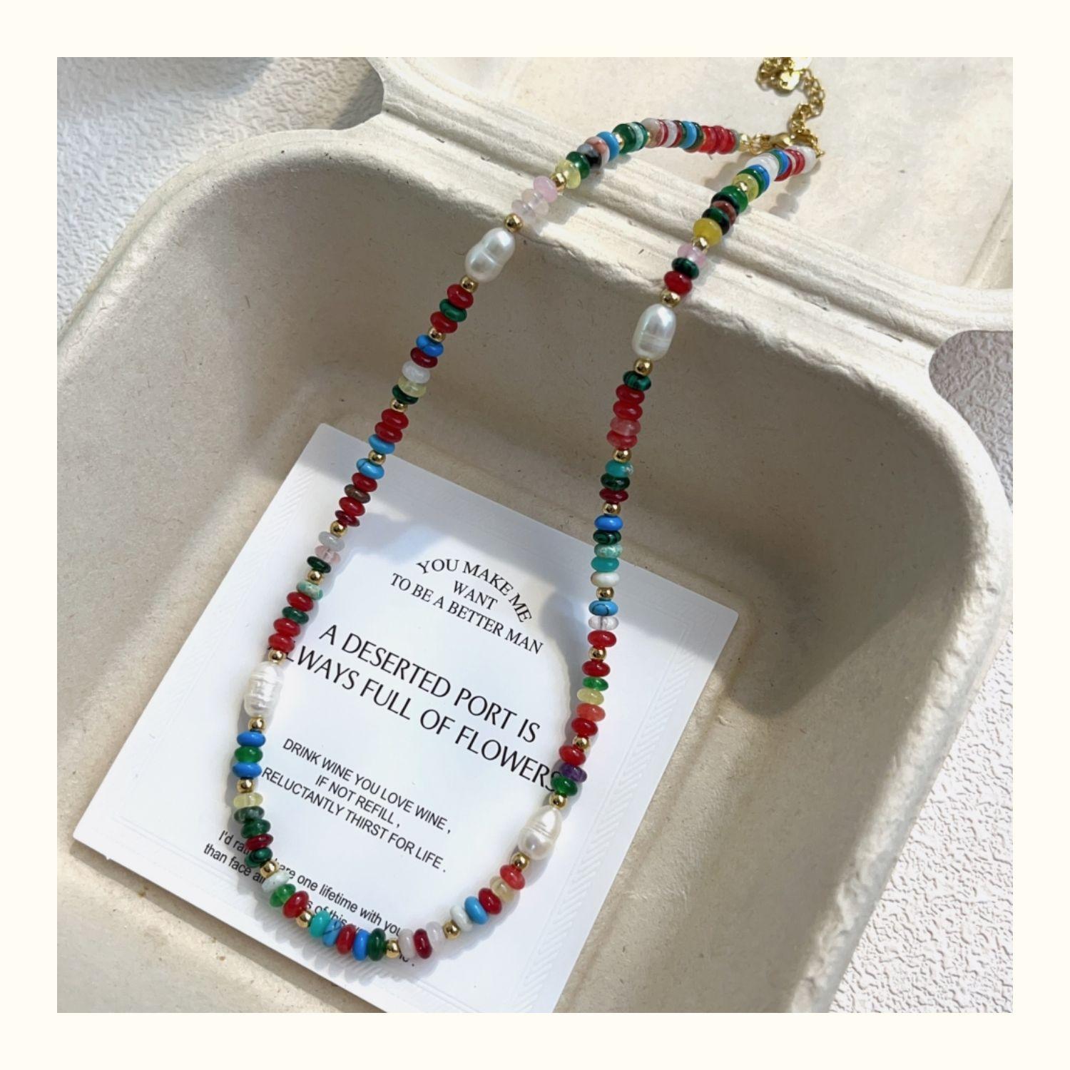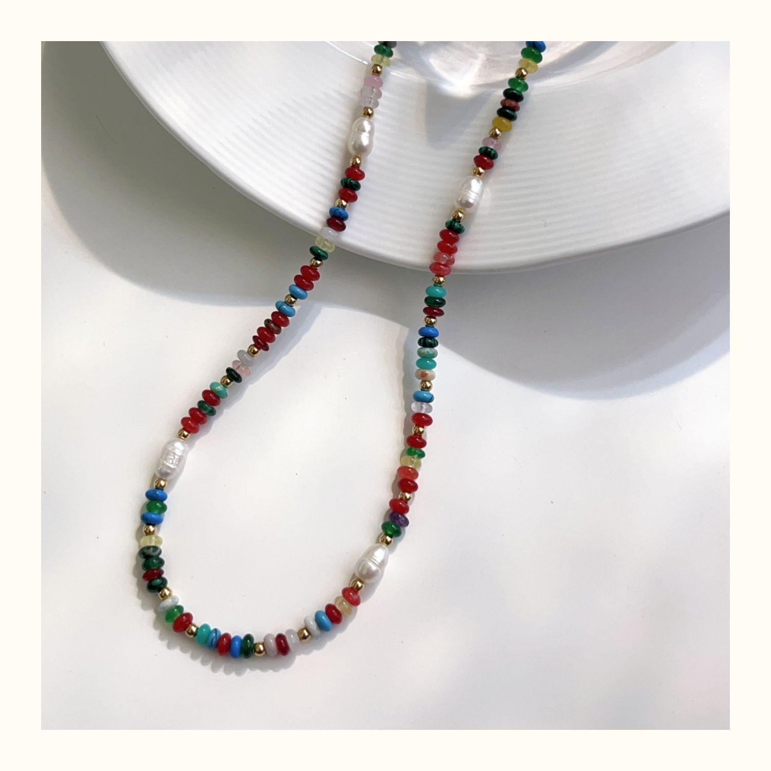 0142 dopamine colored beaded necklace natural stone freshwater pearls