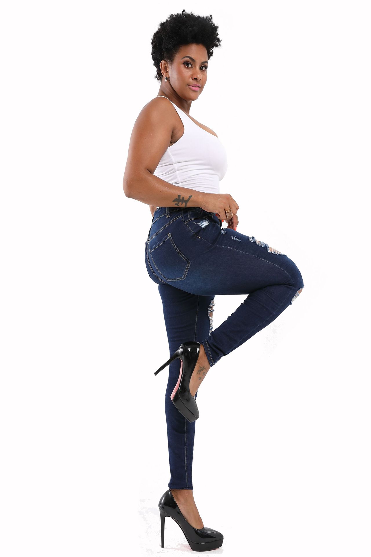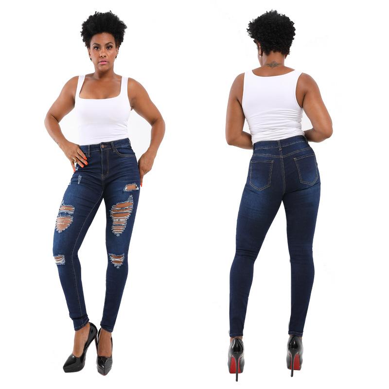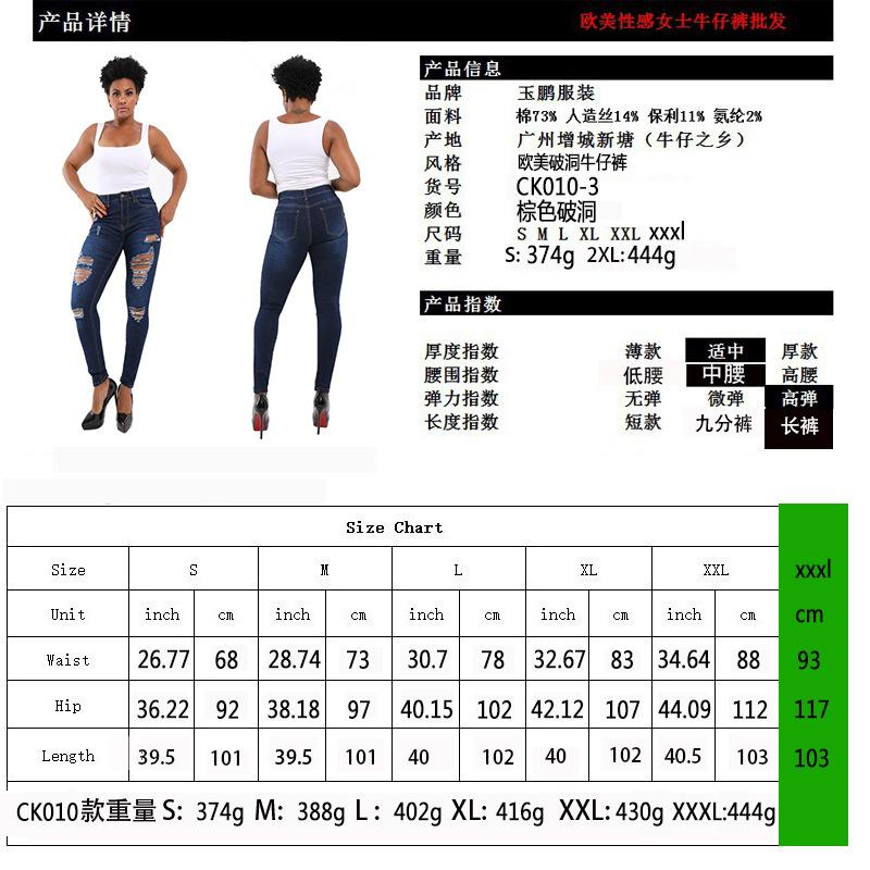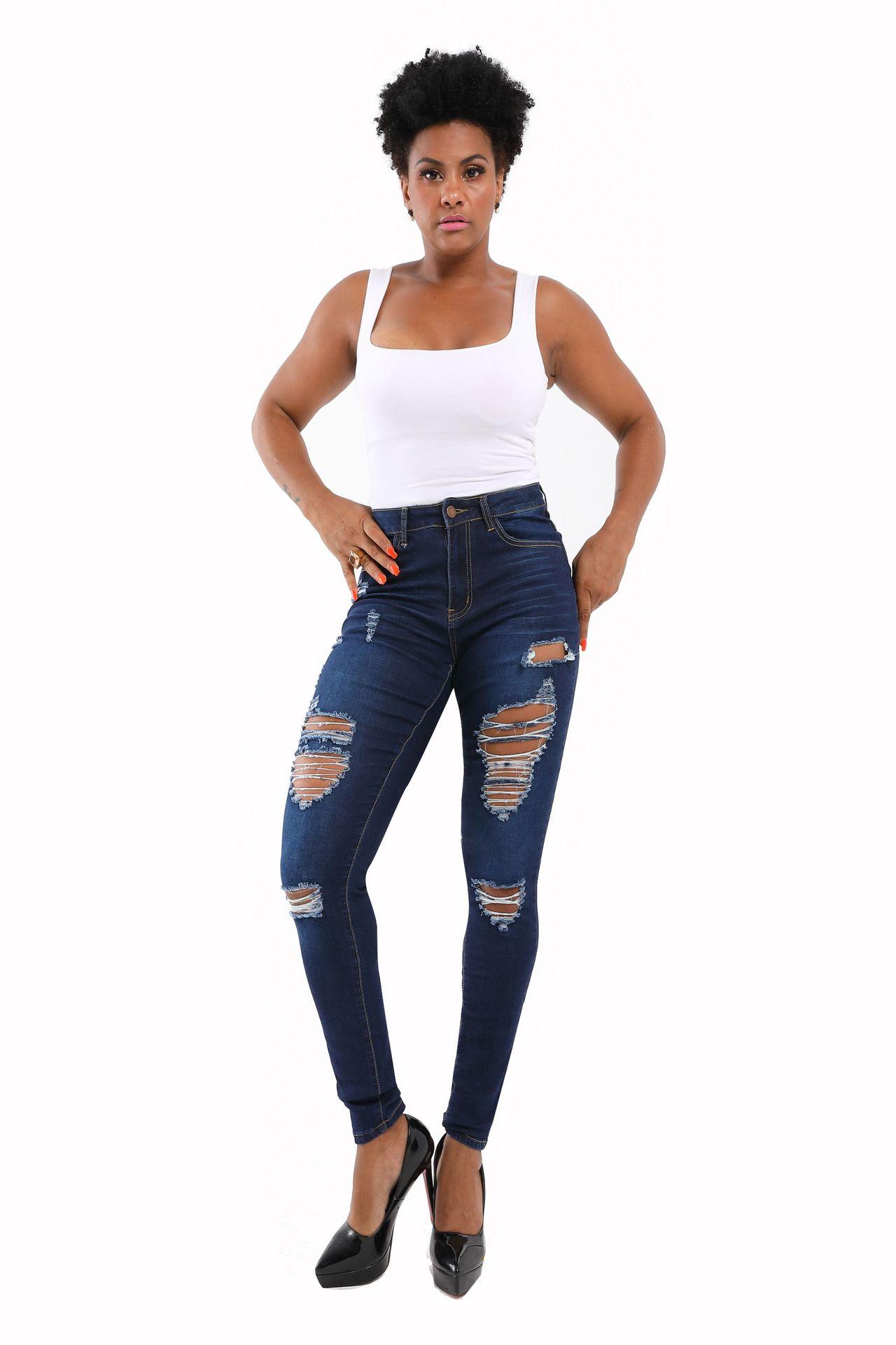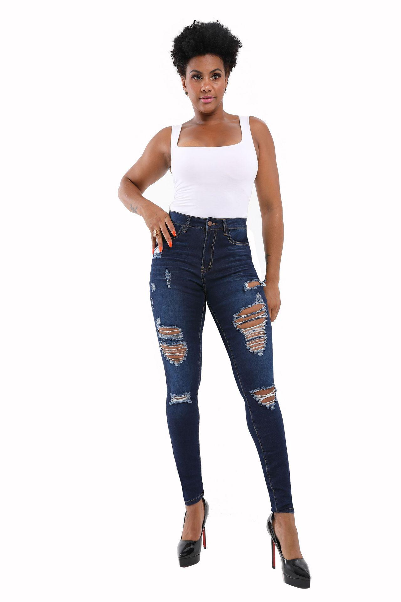 Otoño 2025 Nuevo Amazon Europeo y Americano Estampado de Leopardo Lavado Roto Levanta Glúteos Ajustado Elástico Jeans de Mujer en Stock