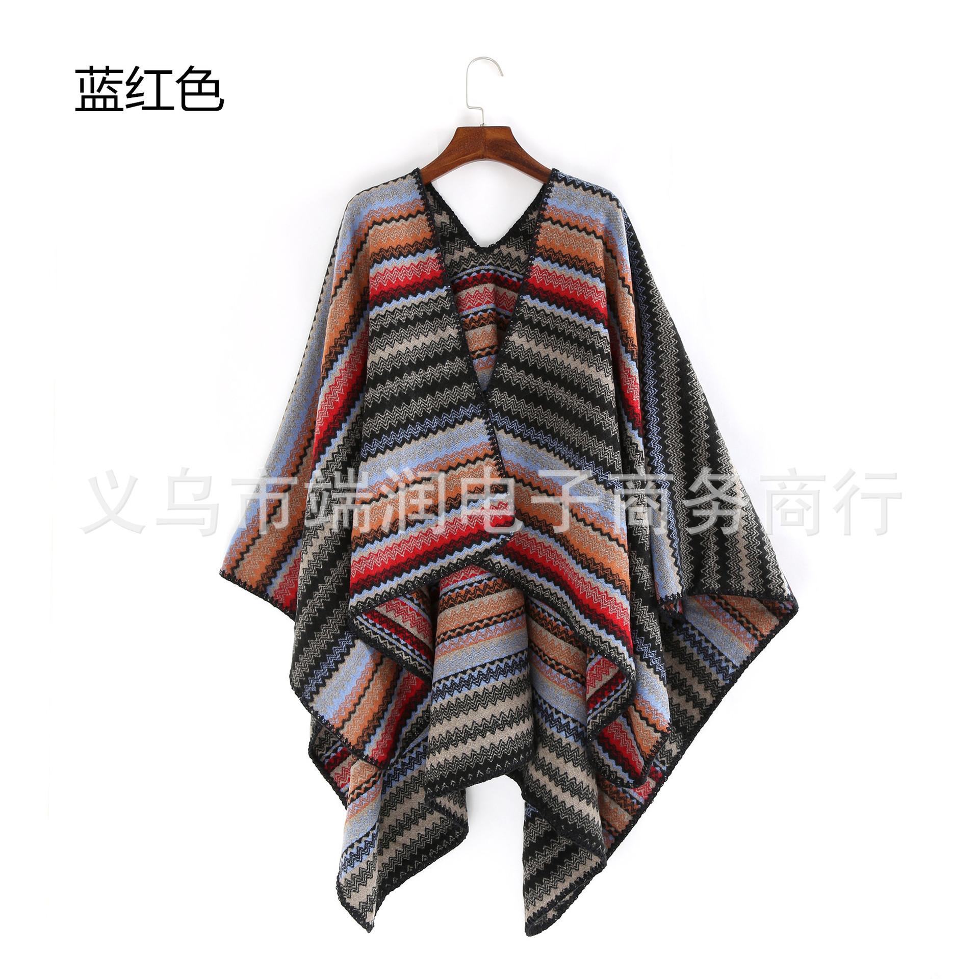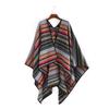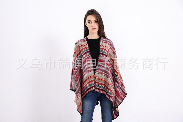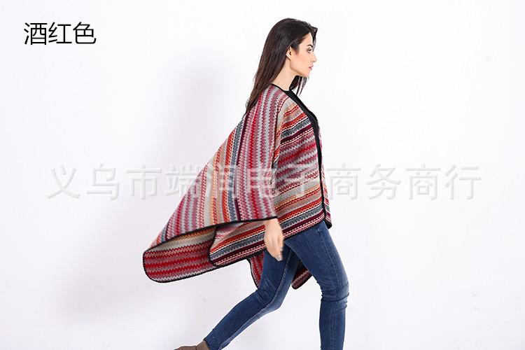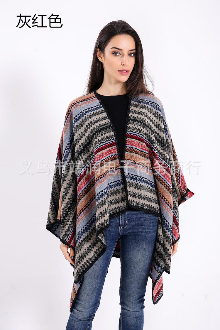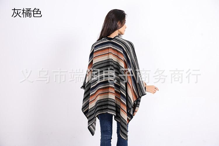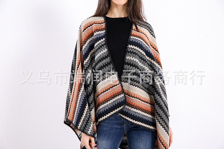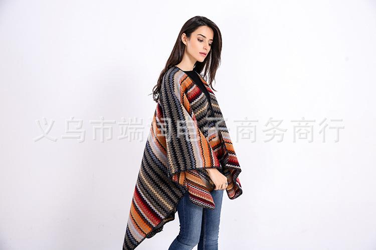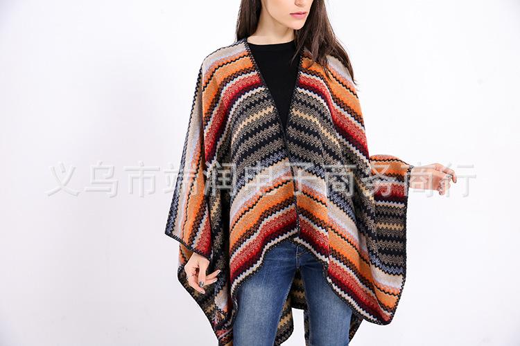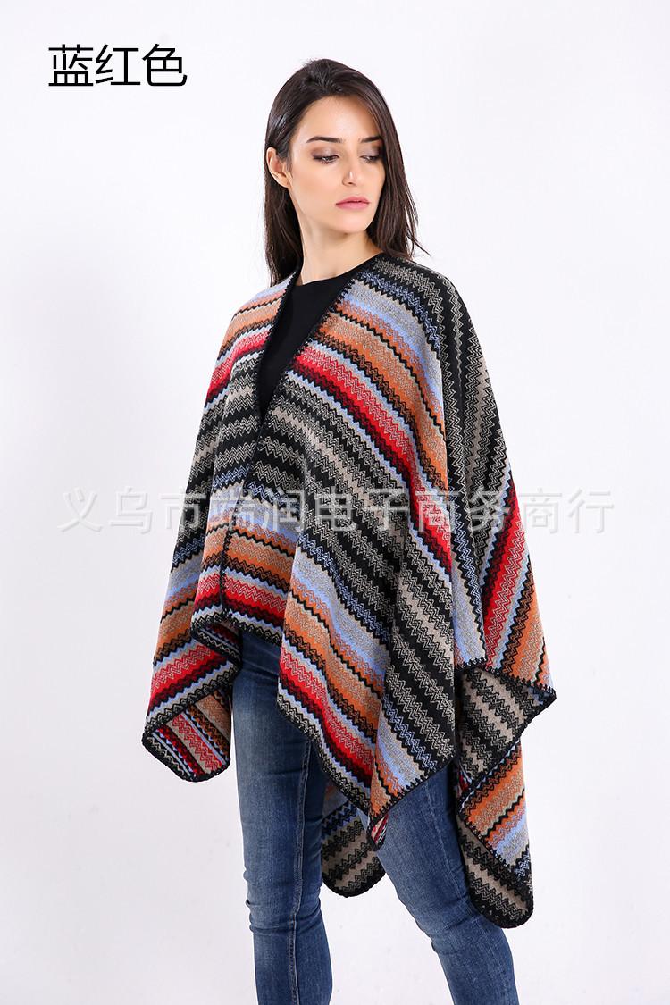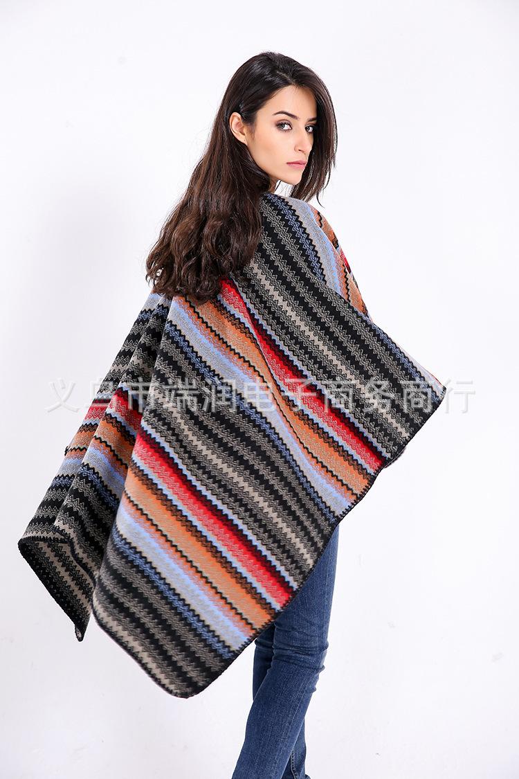 Bufanda de mujer otoño e invierno gruesa súper larga nueva europea y americana artística simple color a rayas combinación de colores abertura chal grande capa