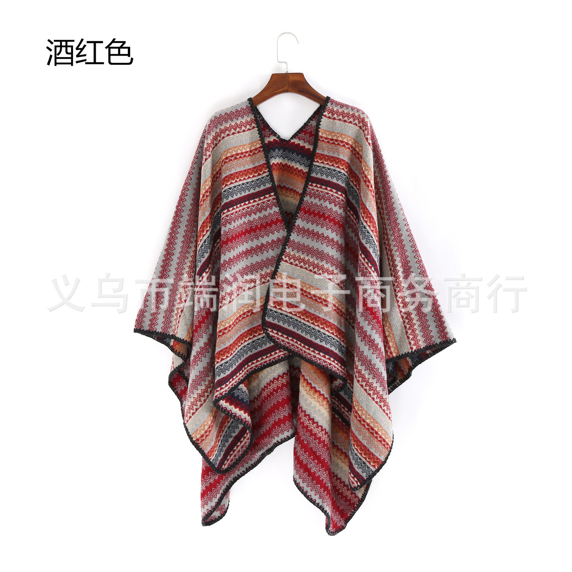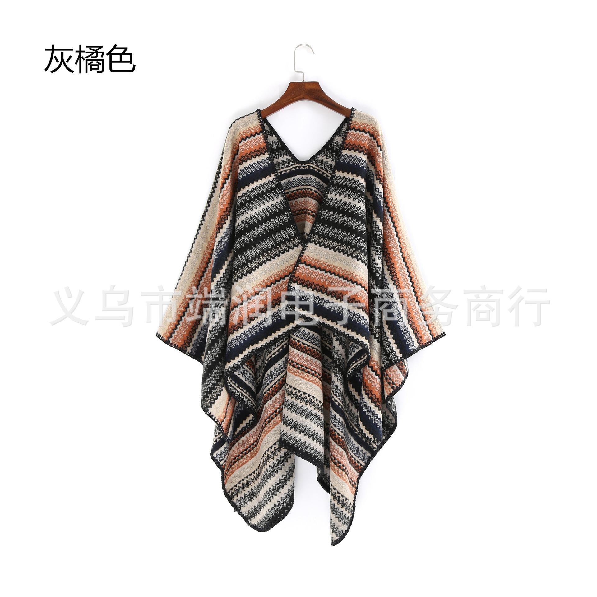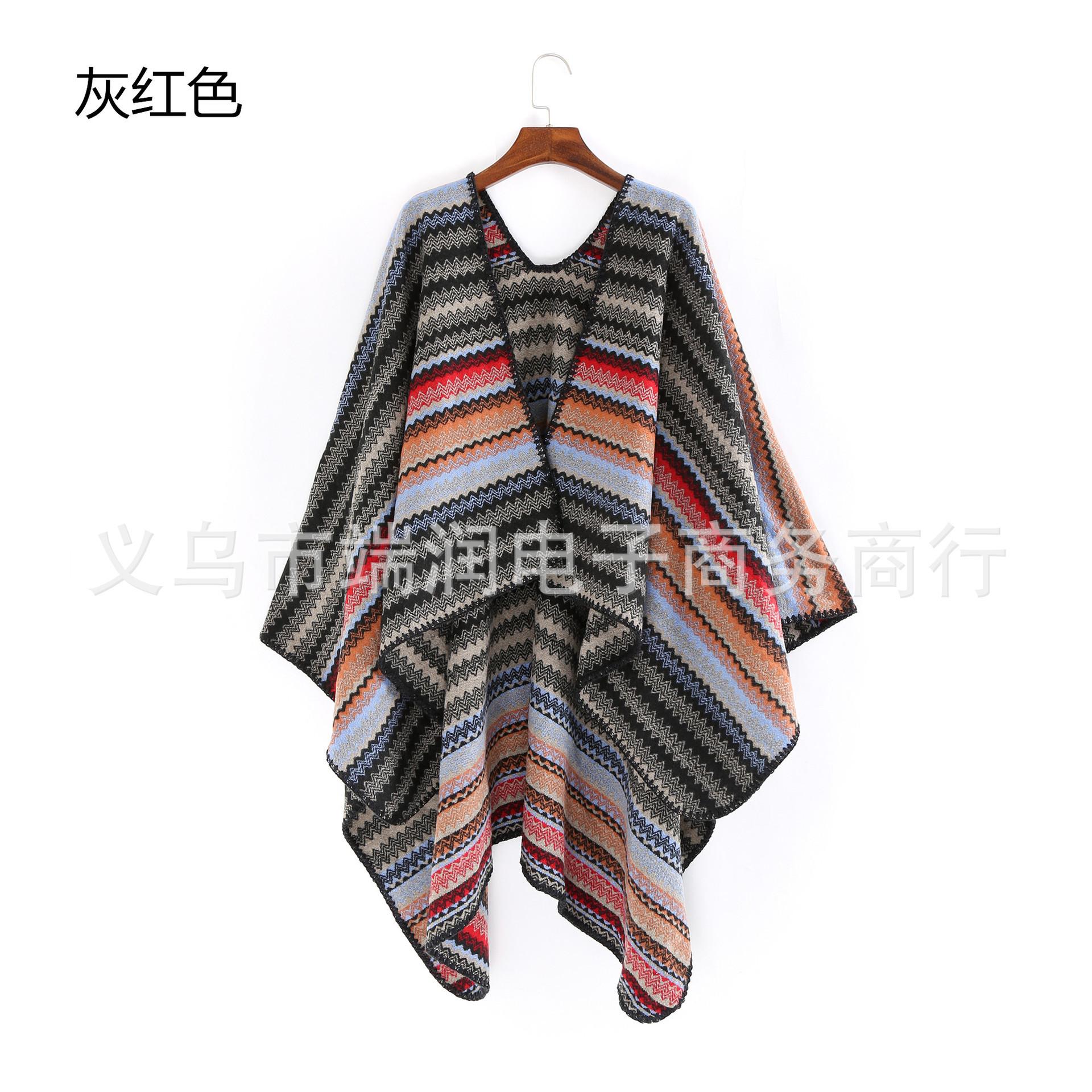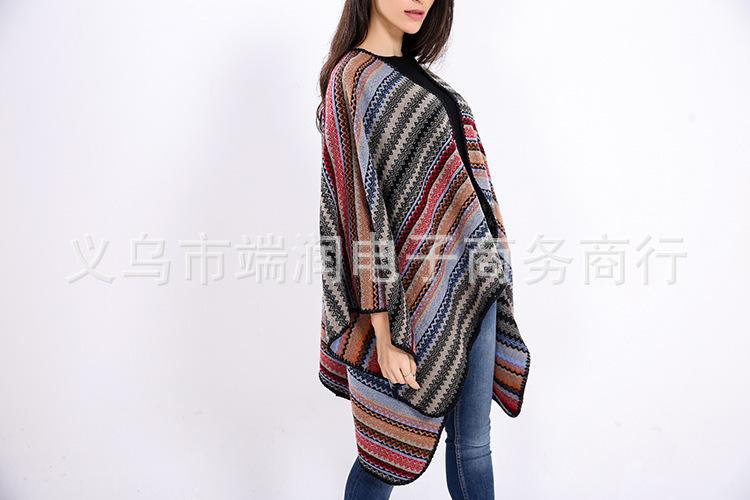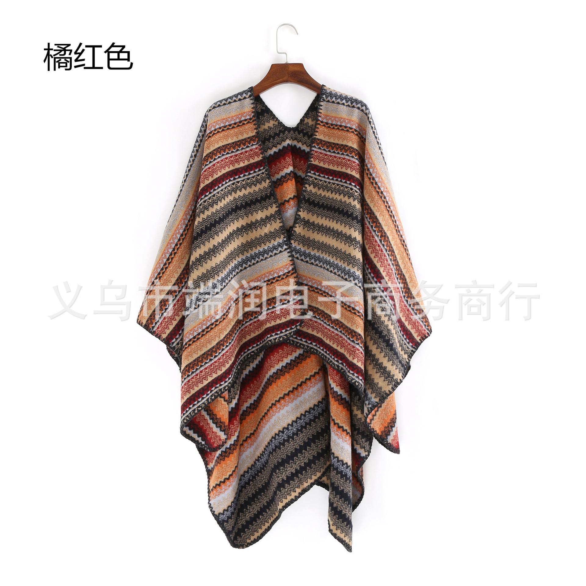 Bufanda de mujer otoño e invierno gruesa súper larga nueva europea y americana artística simple color a rayas combinación de colores abertura chal grande capa