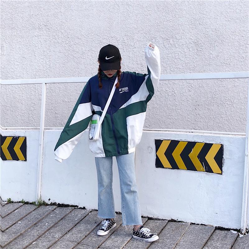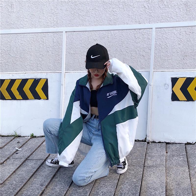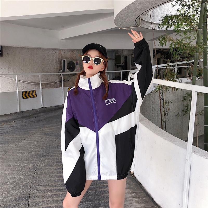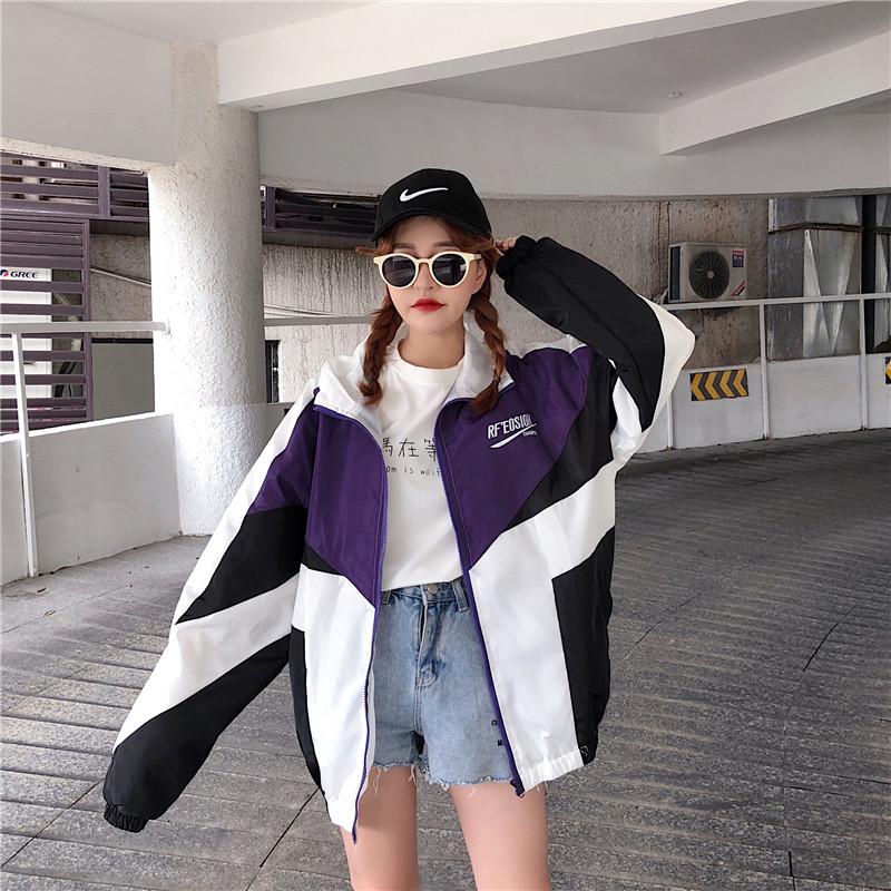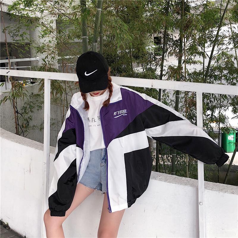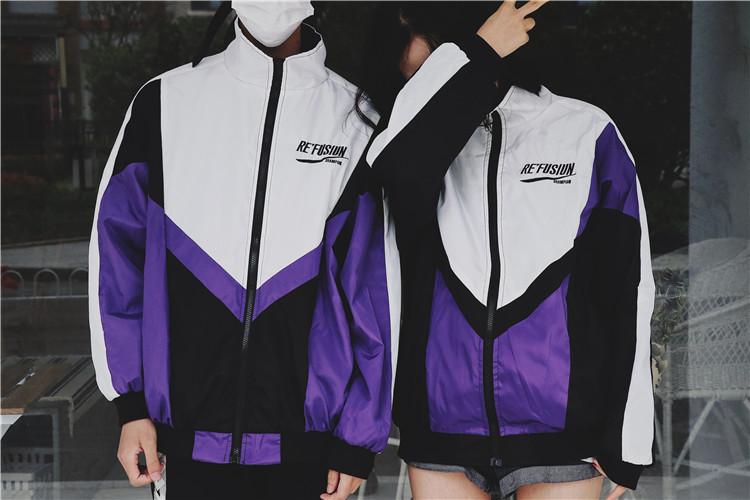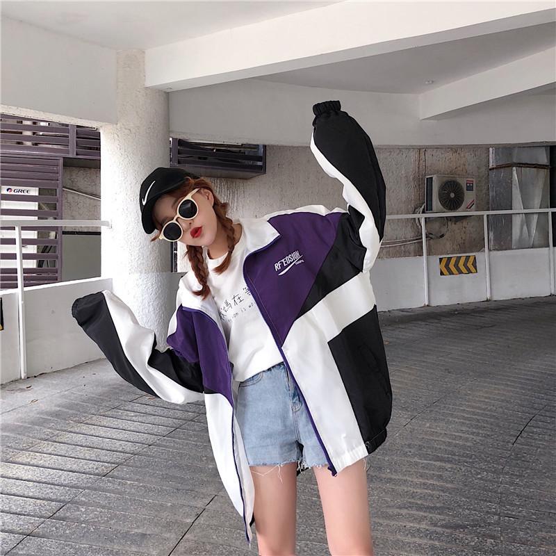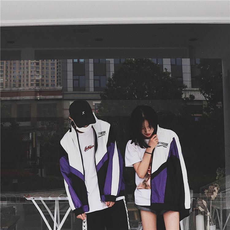 Abrigo estilo Hong Kong Harajuku con costuras en contraste de color, moderno, para hombre y mujer, estilo hip hop callejero europeo y americano, para primavera y otoño.