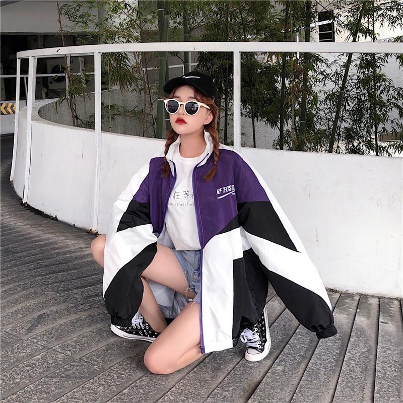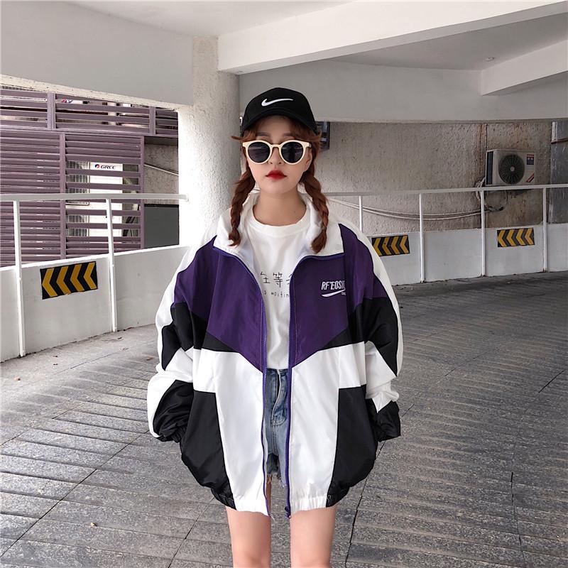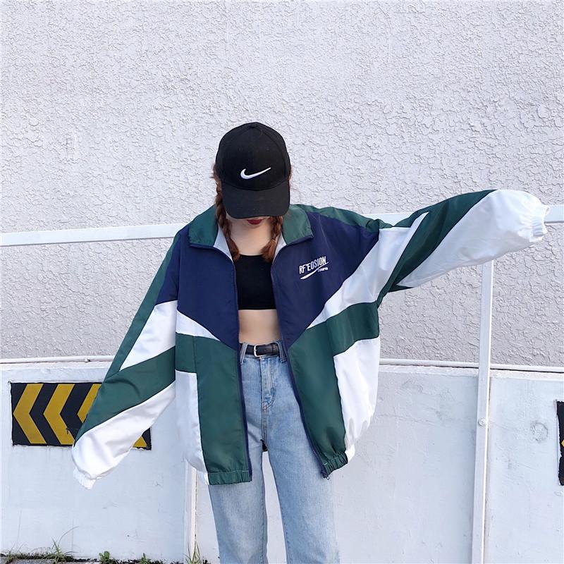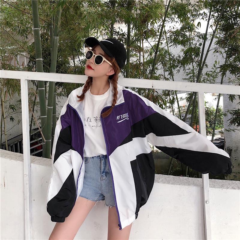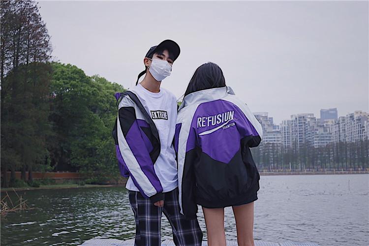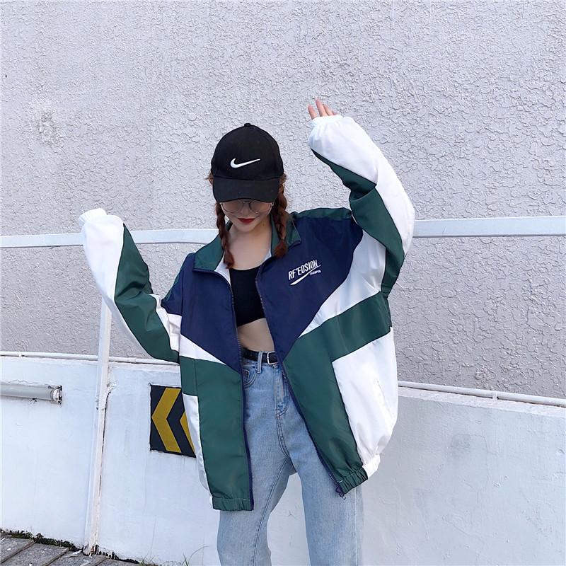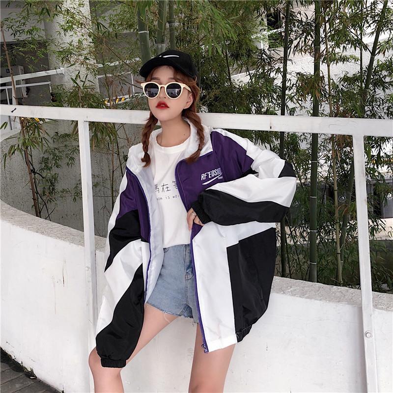 Abrigo estilo Hong Kong Harajuku con costuras en contraste de color, moderno, para hombre y mujer, estilo hip hop callejero europeo y americano, para primavera y otoño.