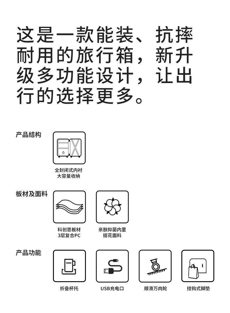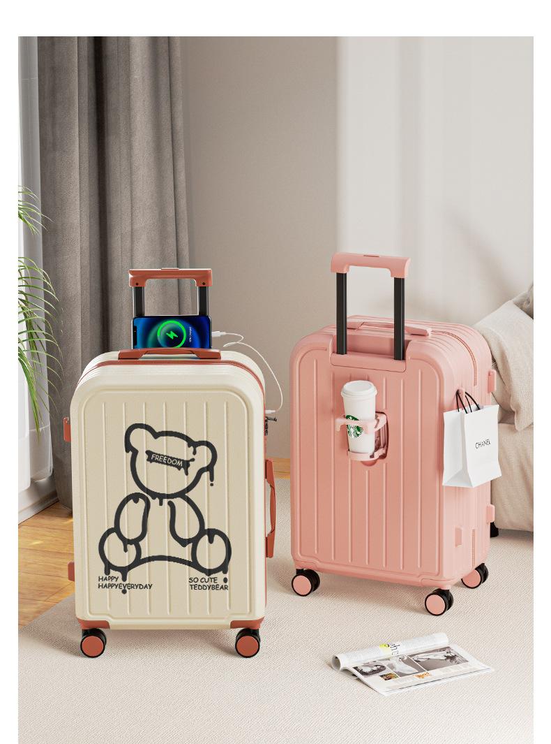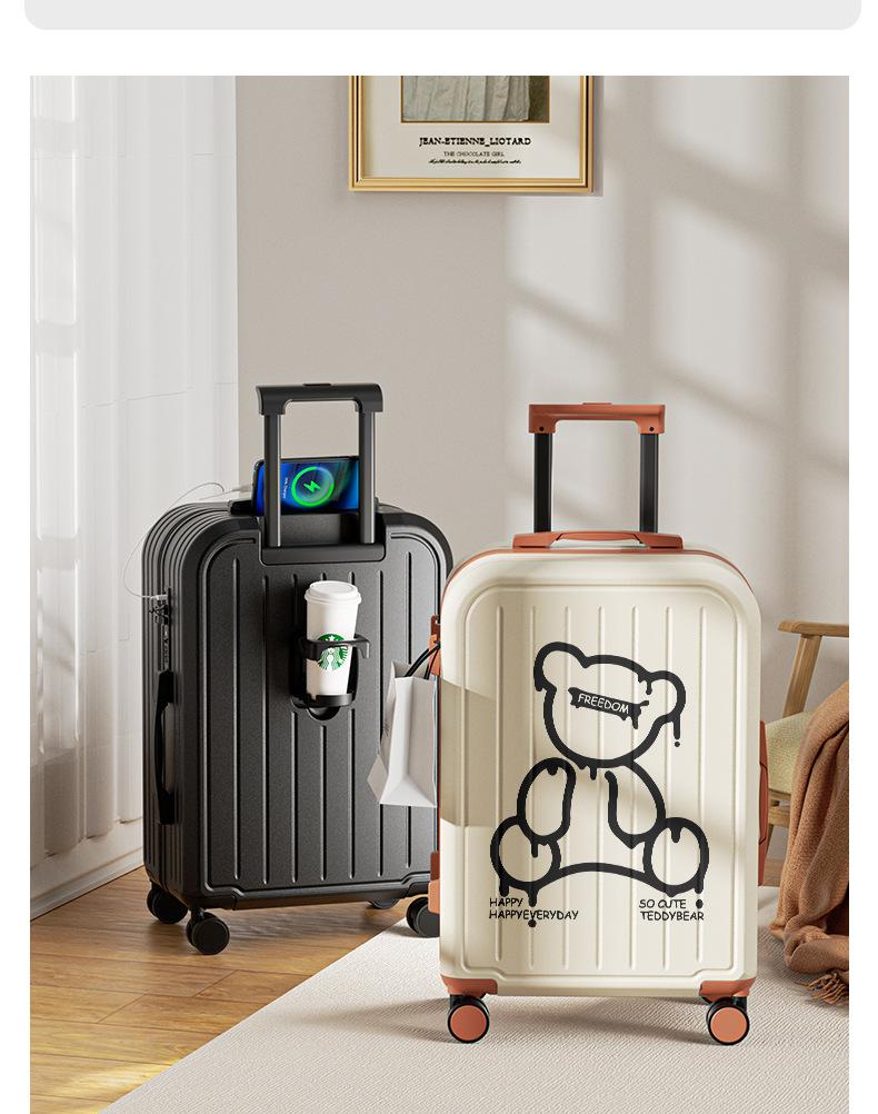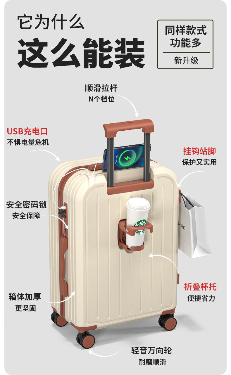 Maleta Multifuncional para Mujer de 20 pulgadas con Cierre Duradero, Recargable, Equipaje de Viaje para Hombre con Portavasos