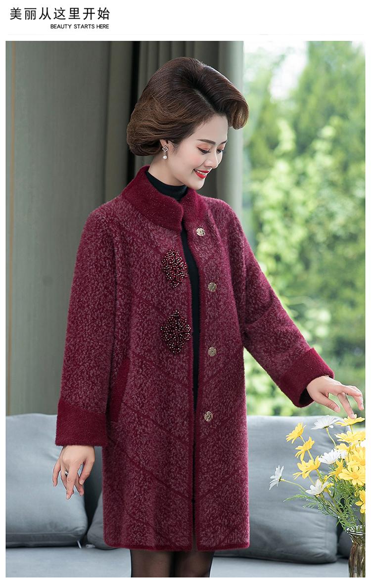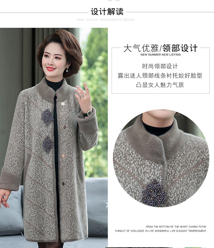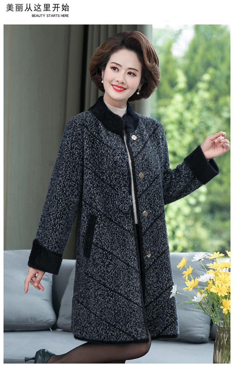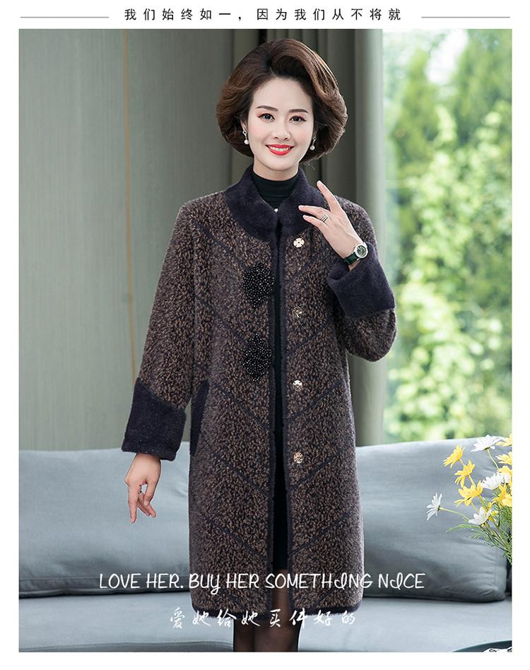 Abrigo de Otoño e Invierno de Mamá Talla Grande Abrigo de Terciopelo Visón Largo Medio para Mujeres de Mediana Edad y Mayores Abrigo de Lana Color Sable Amarillo