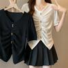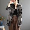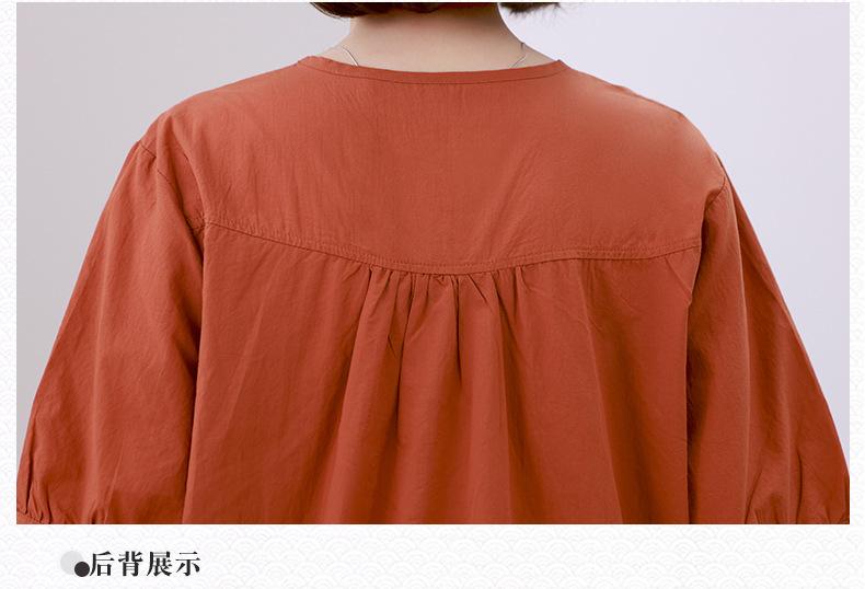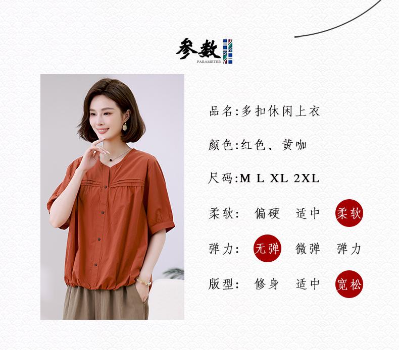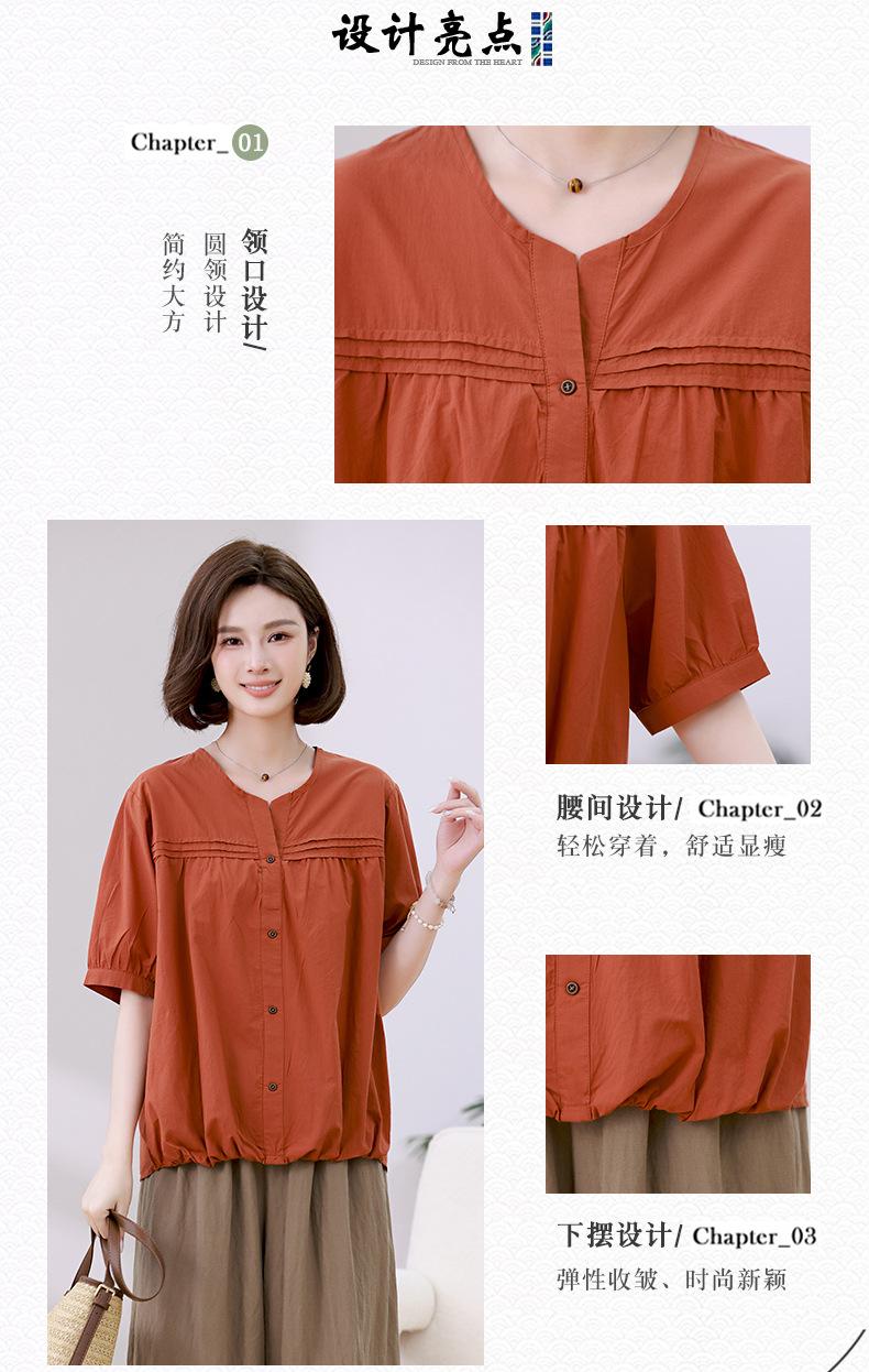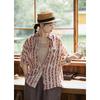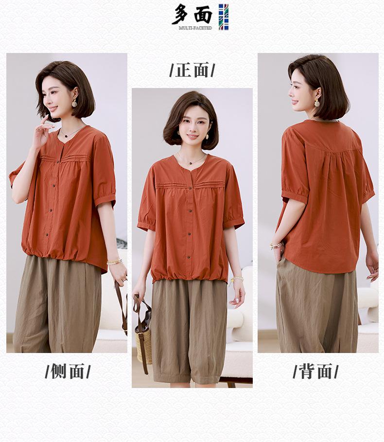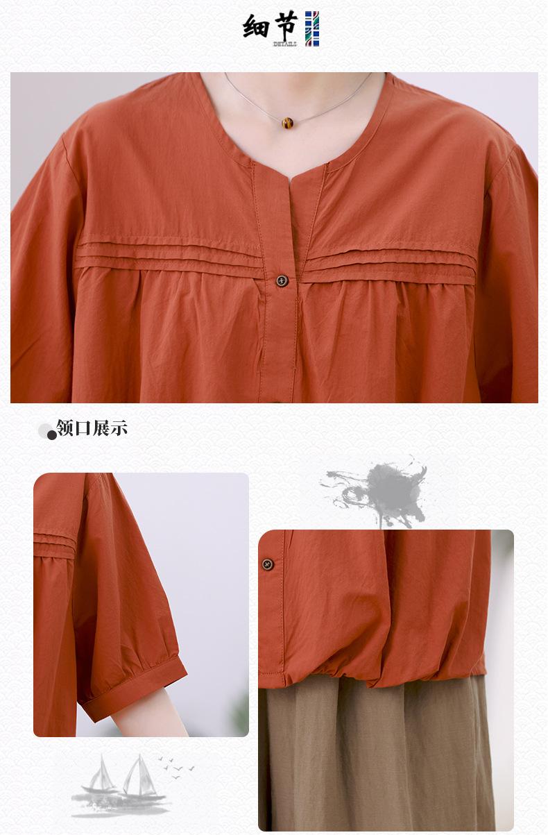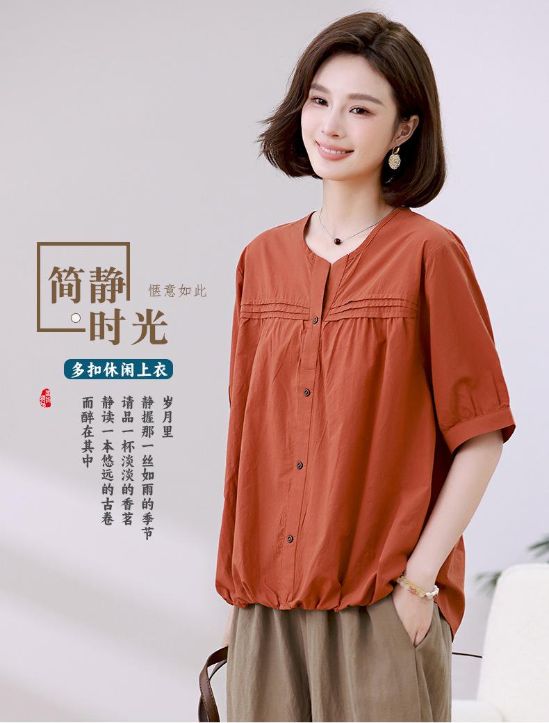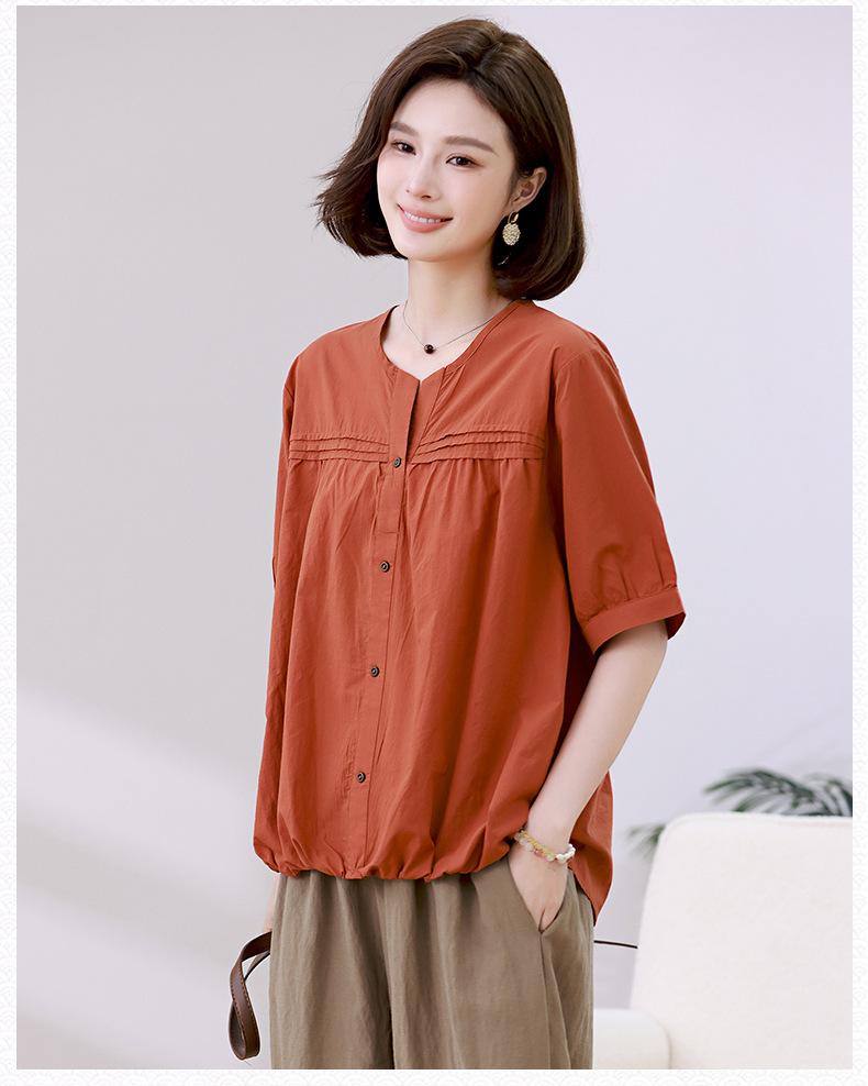 Camisa de algodón ligero artística, cárdigan de un solo pecho con cuello en V plisado, manga corta, holgada, talla grande, para mujer