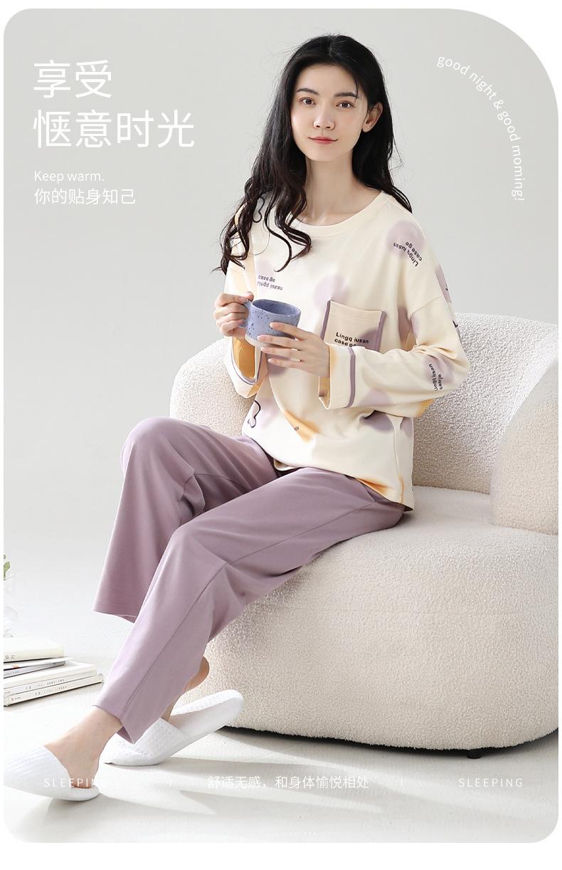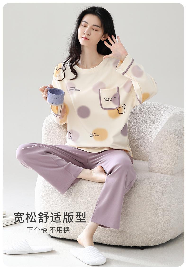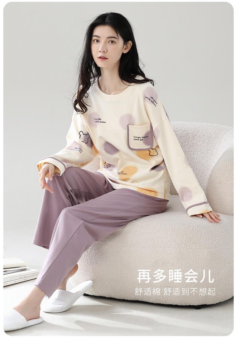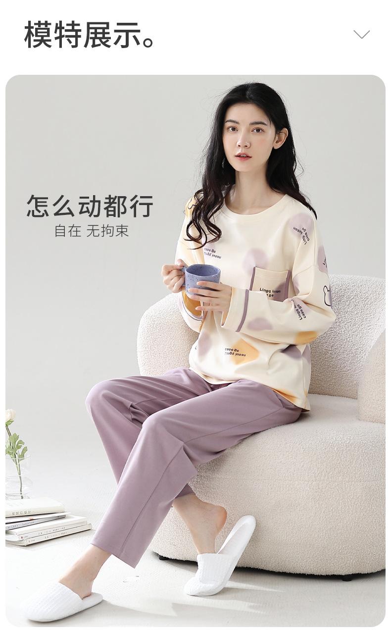 Pijamas de mujer de primavera y otoño, jersey de algodón de manga larga, holgado, de talla grande, nuevo traje de algodón para mujer para otoño e invierno, ropa de casa