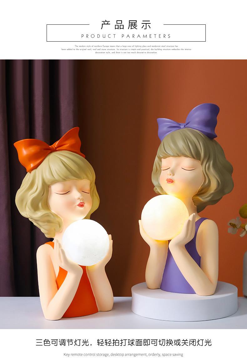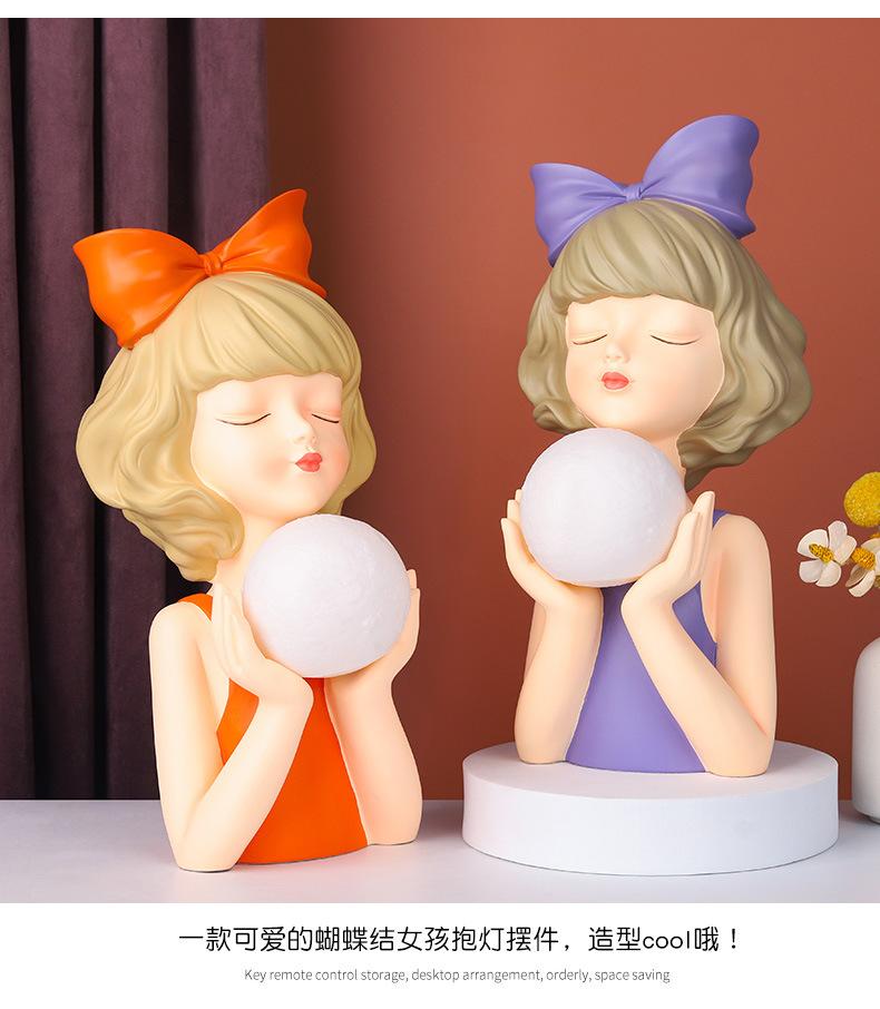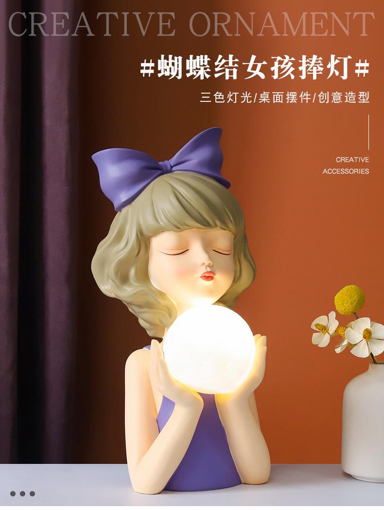 Adornos de Sala de Estar de Lujo Ligero Estilo Ins Luces de Niña con Lazo Decoraciones de Escritorio para el Hogar Regalo de Boda Regalo de Acompañamiento