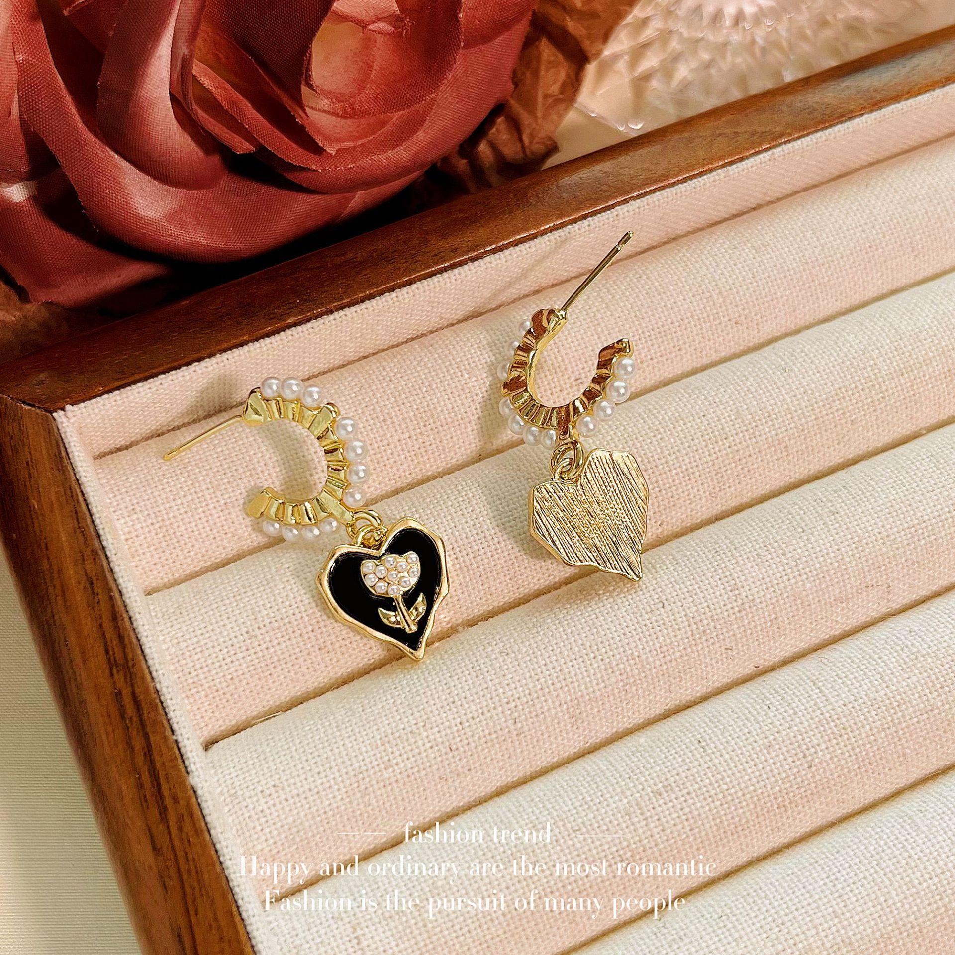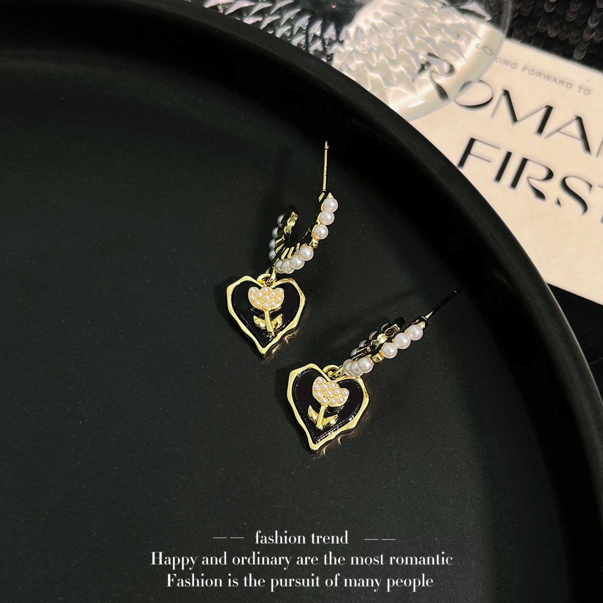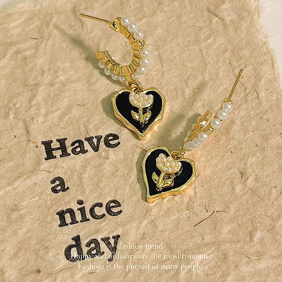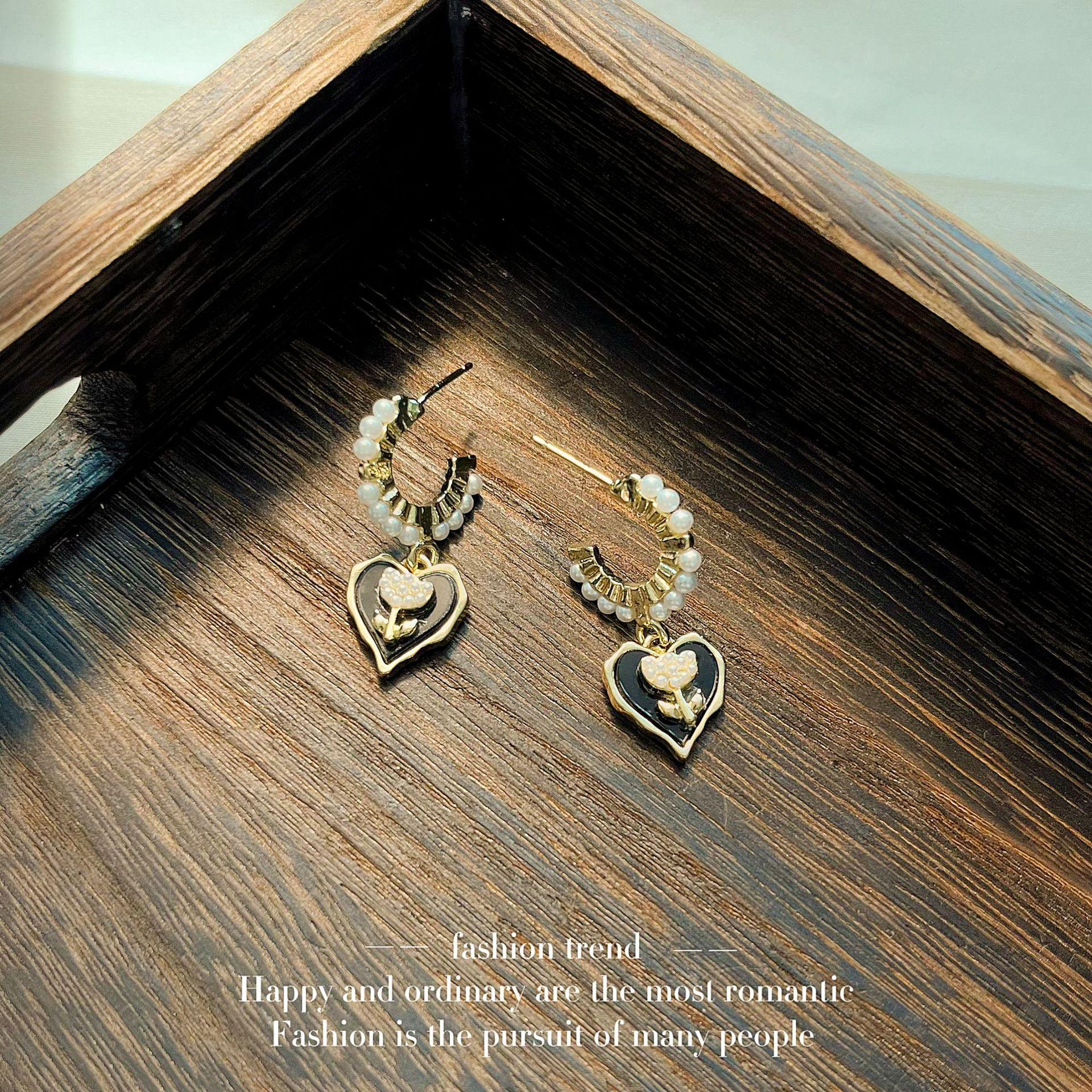 Pendientes de perla de amor retro francés, pendientes sencillos de moda con diseño de nicho, pendientes de lujo ligeros y de alta gama.