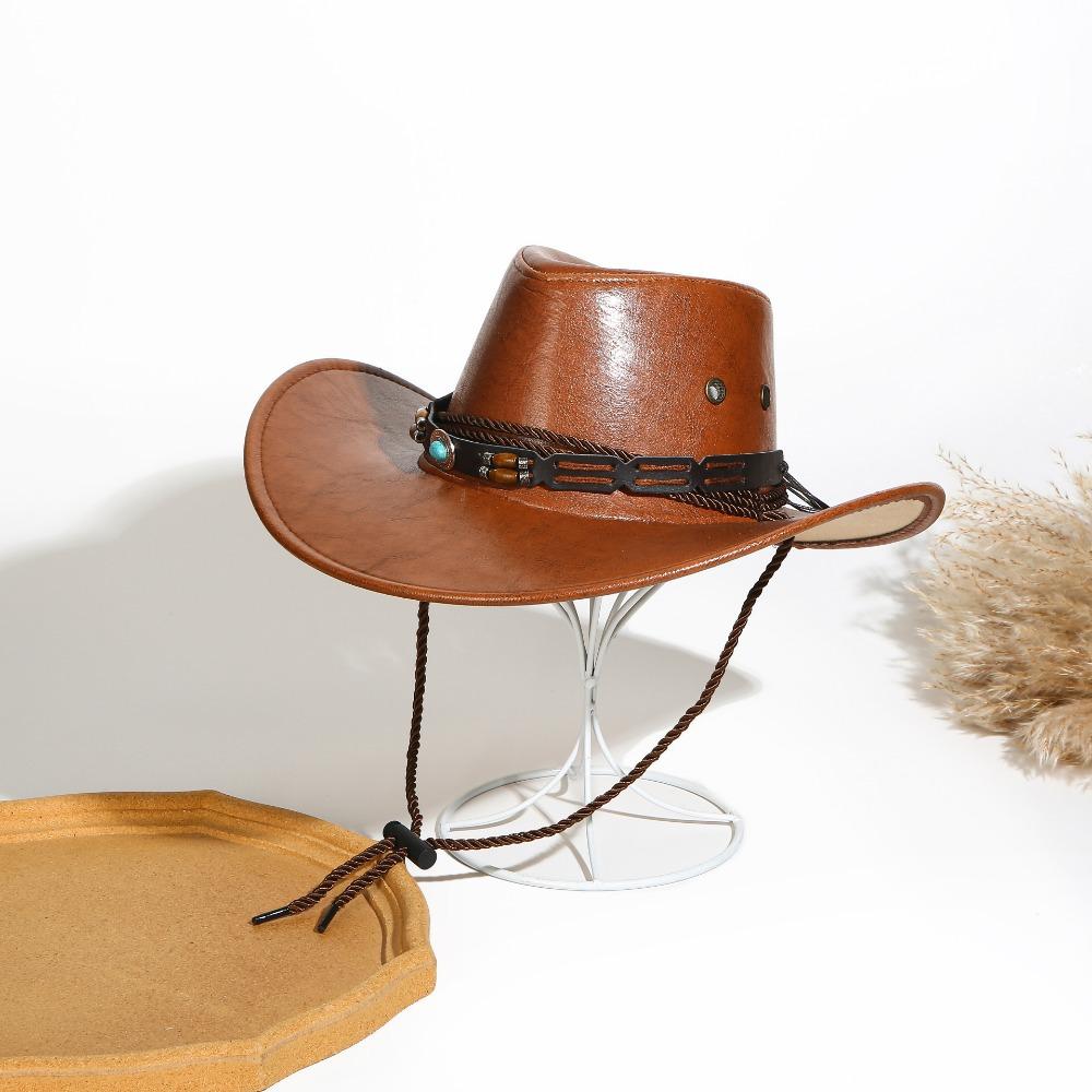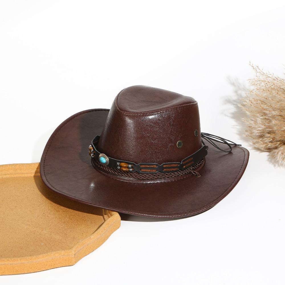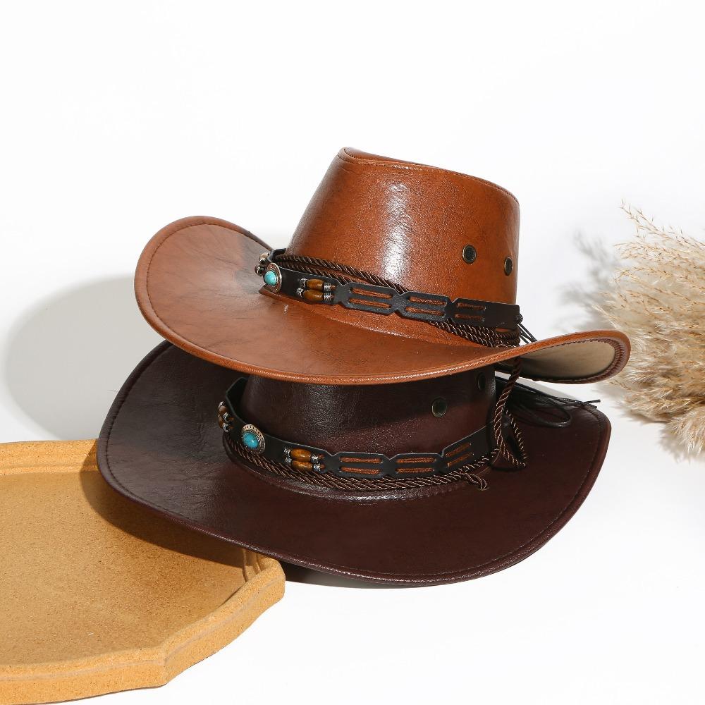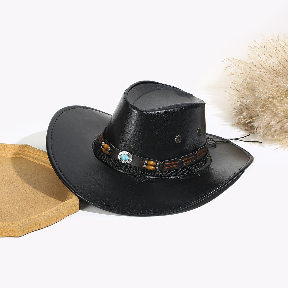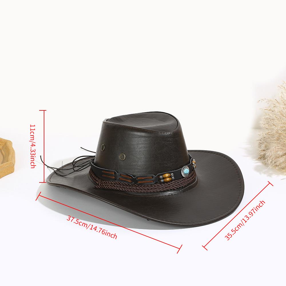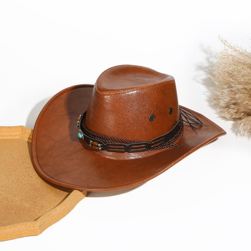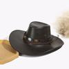 Sombrero vaquero occidental de estilo étnico transfronterizo de comercio exterior a prueba de sol, cuero sintético PU brillante, para exteriores, a prueba de sol, rizado, sombrero de caballero