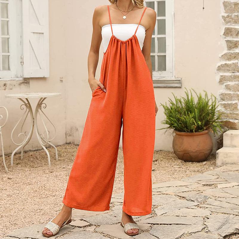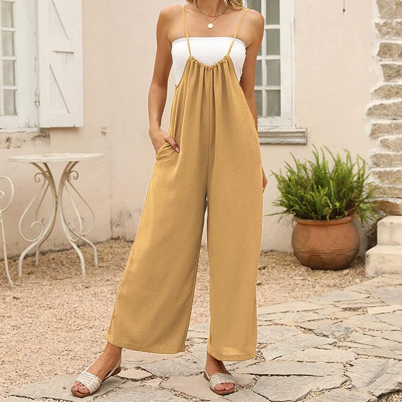Mono de tirantes de punto con pantalones casuales de verano para mujer, comercio transfronterizo de Amazon Europa y América 2024