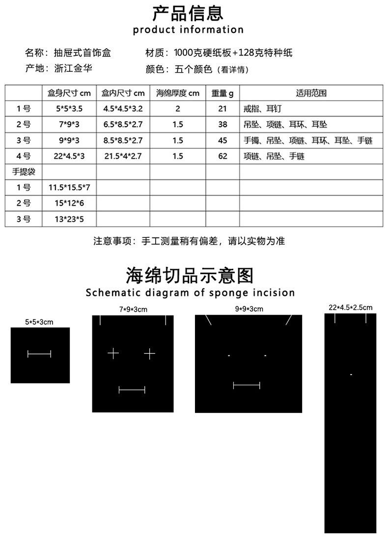 White; 5*5*3.5 (including sponge), White; 7*9*3 (with sponge), White; 9*9*3 (with sponge), White; 22*4.5*3 (in...