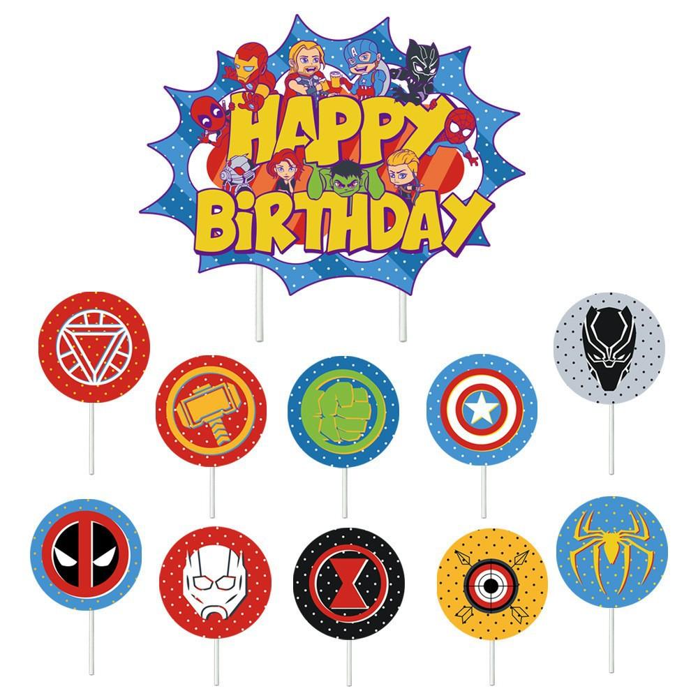 Bandera temática de los Vengadores para tirar, tarjeta para pastel, traje de globos para insertar, suministros de decoración para fiesta de cumpleaños de superhéroes