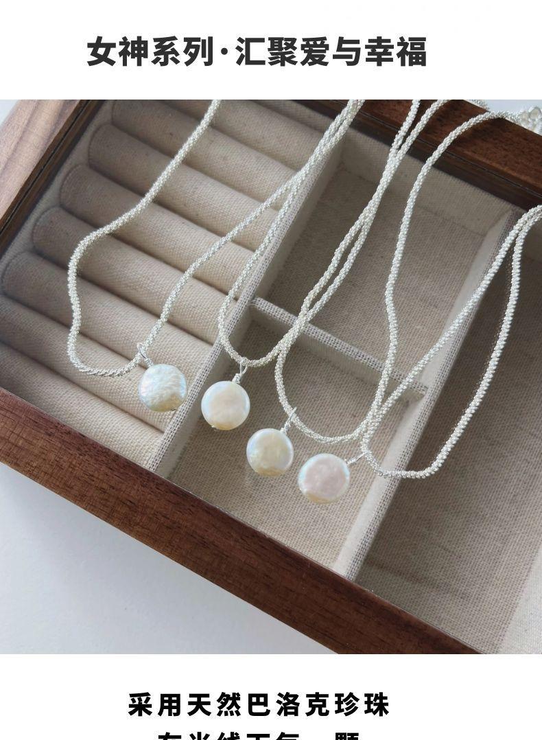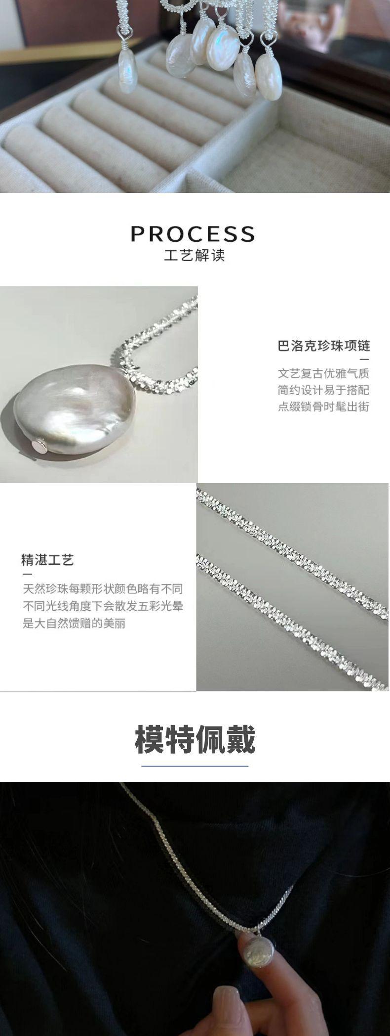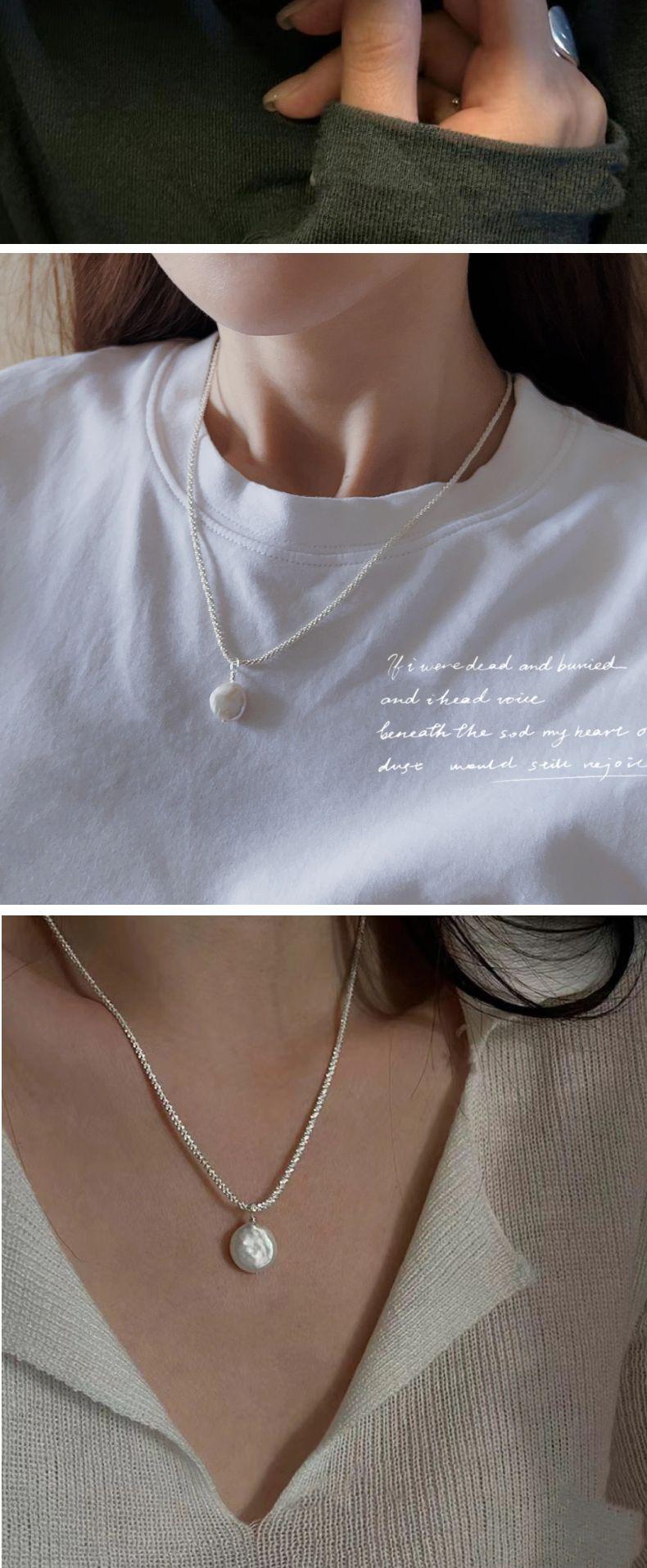 Collar de Mujer Monica Sparkling Stars Plata Quebrada Colgante de Perla Natural Irregular Cadena Clavícula Apilada