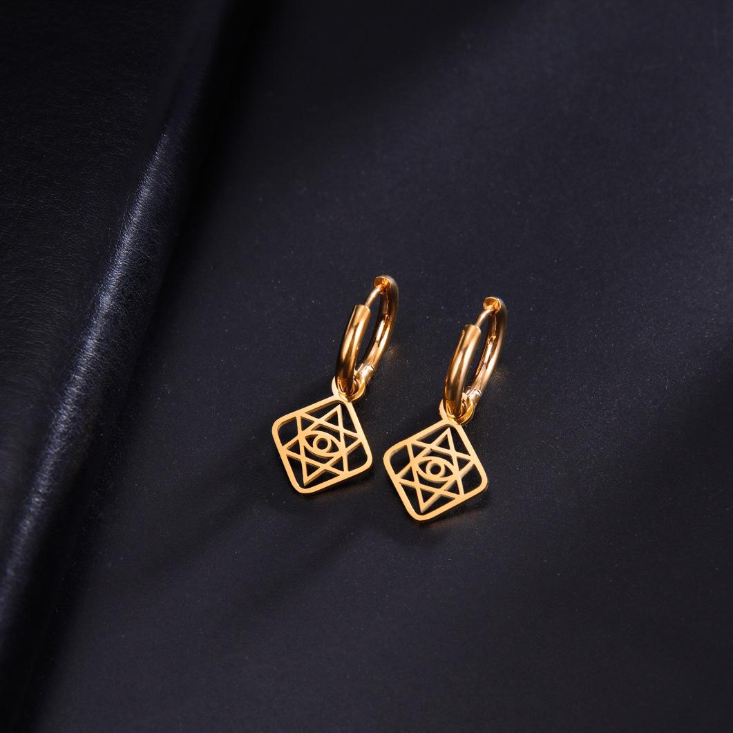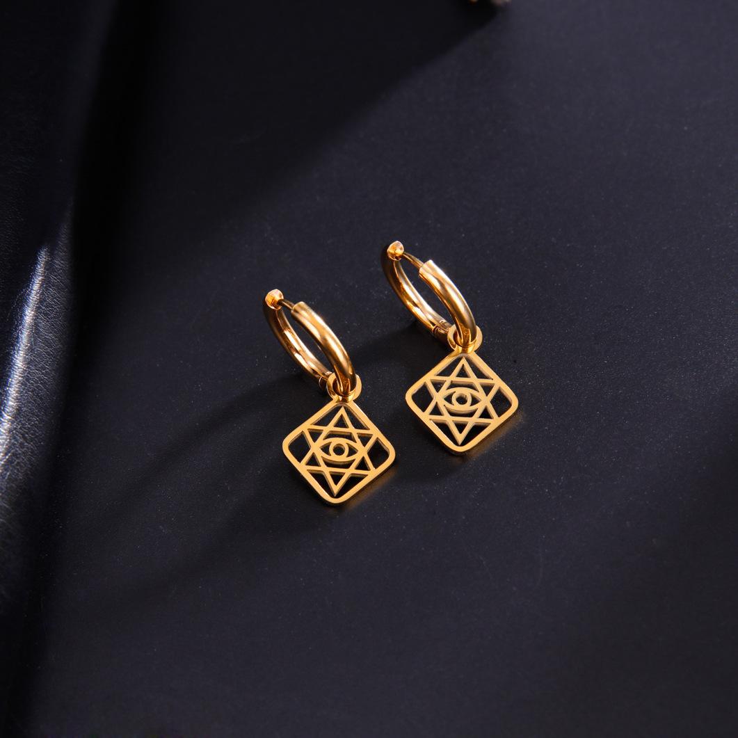 Pendientes de comercio electrónico transfronterizo al por mayor, pendientes de ojo de estrella de seis puntas con caja hueca geométrica retro de estilo étnico personalizado europeo y americano