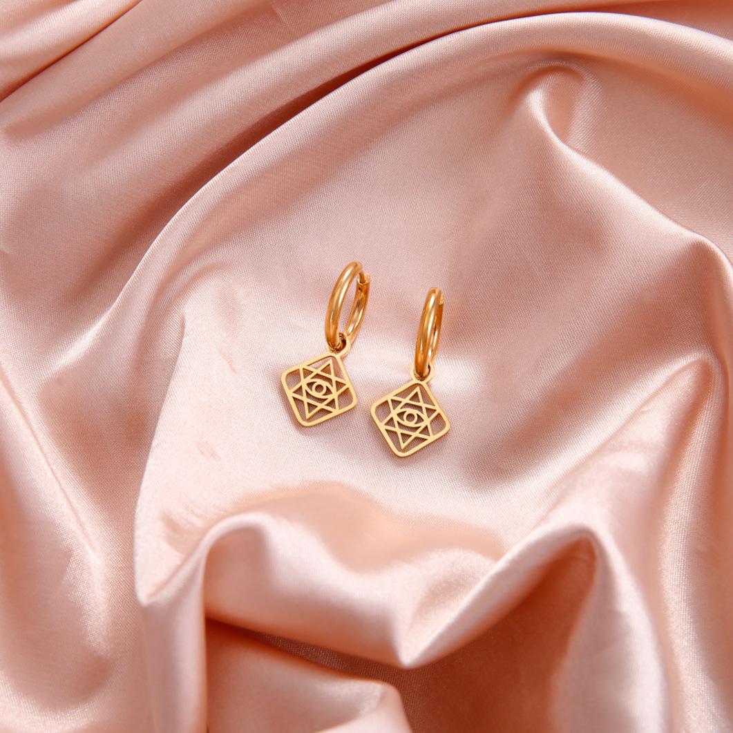 Ethnic style retro geometric hollow box six-pointed star Eye earrings, Ethnic style