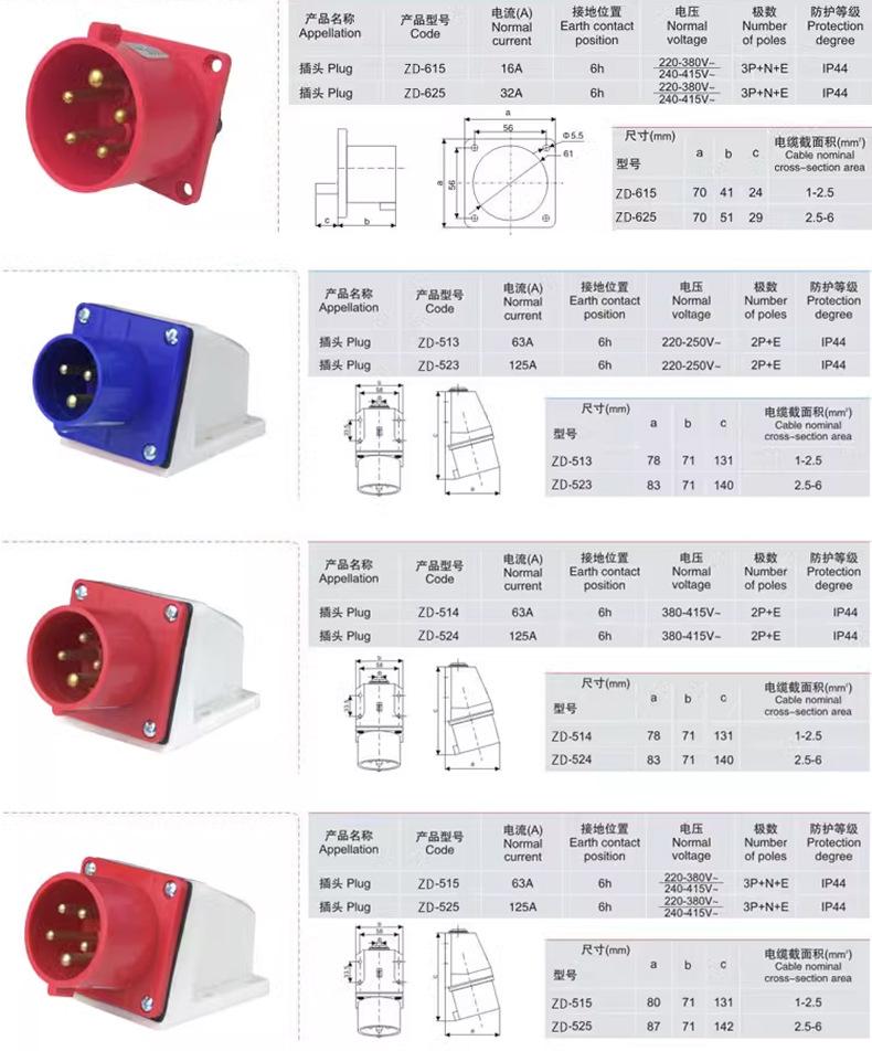 3-core 16a concealed reverse plug, 4-core 16a concealed reverse plug, 5-core 16a concealed reverse plug, 3-cor...