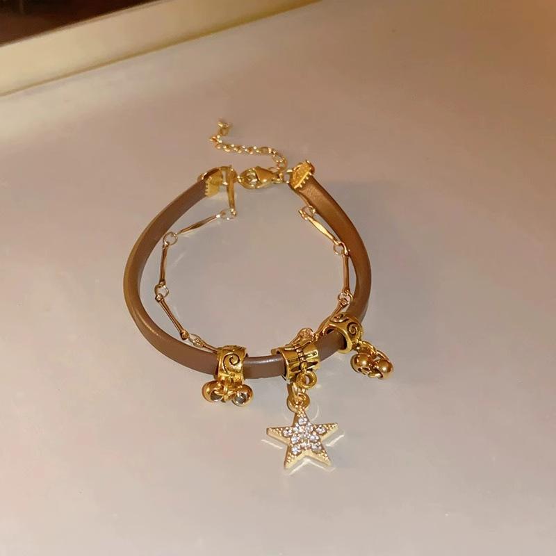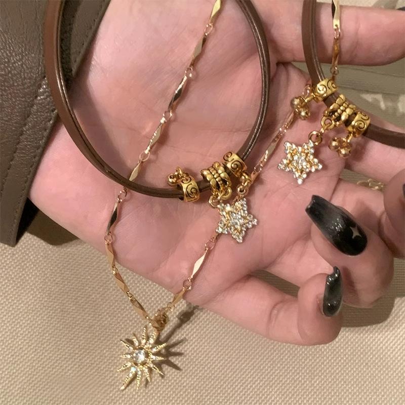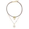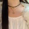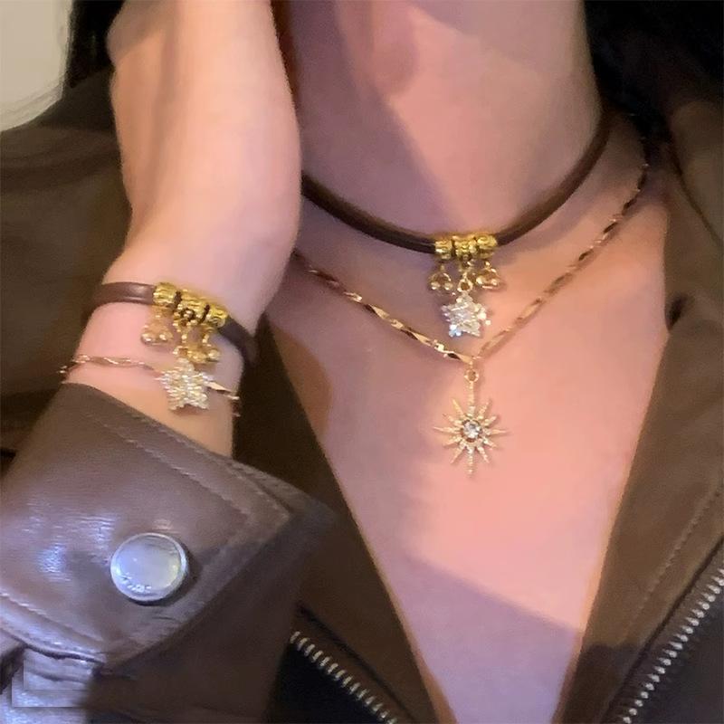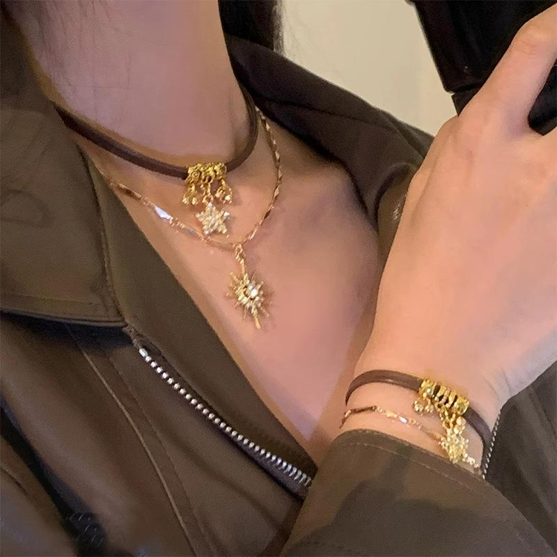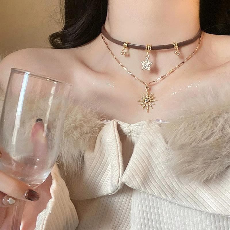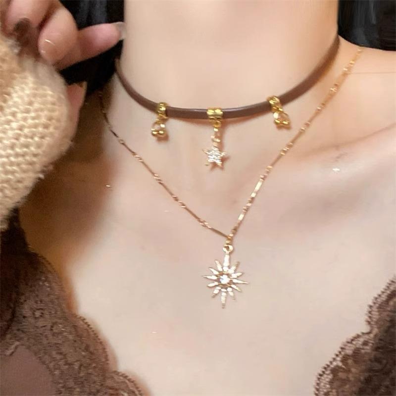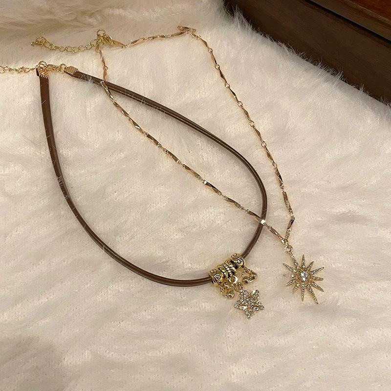Gargantilla Maillard Niche All-Match estilo americano, collar de cuero marrón para mujer, collar de clavícula con girasol de doble capa