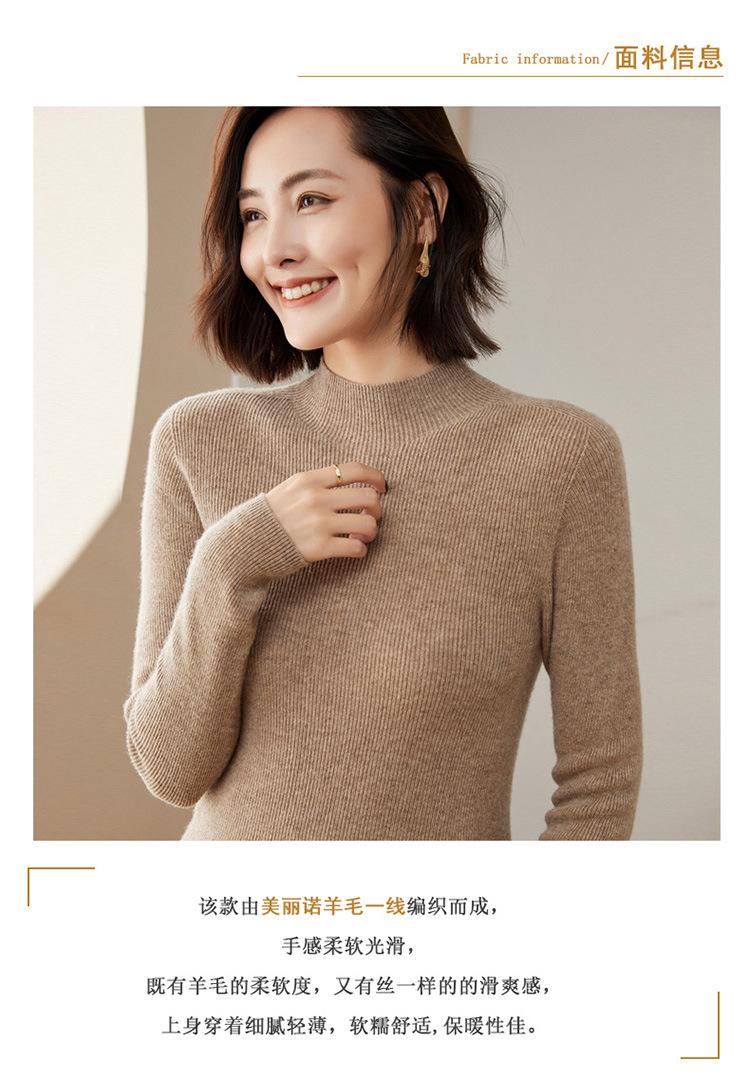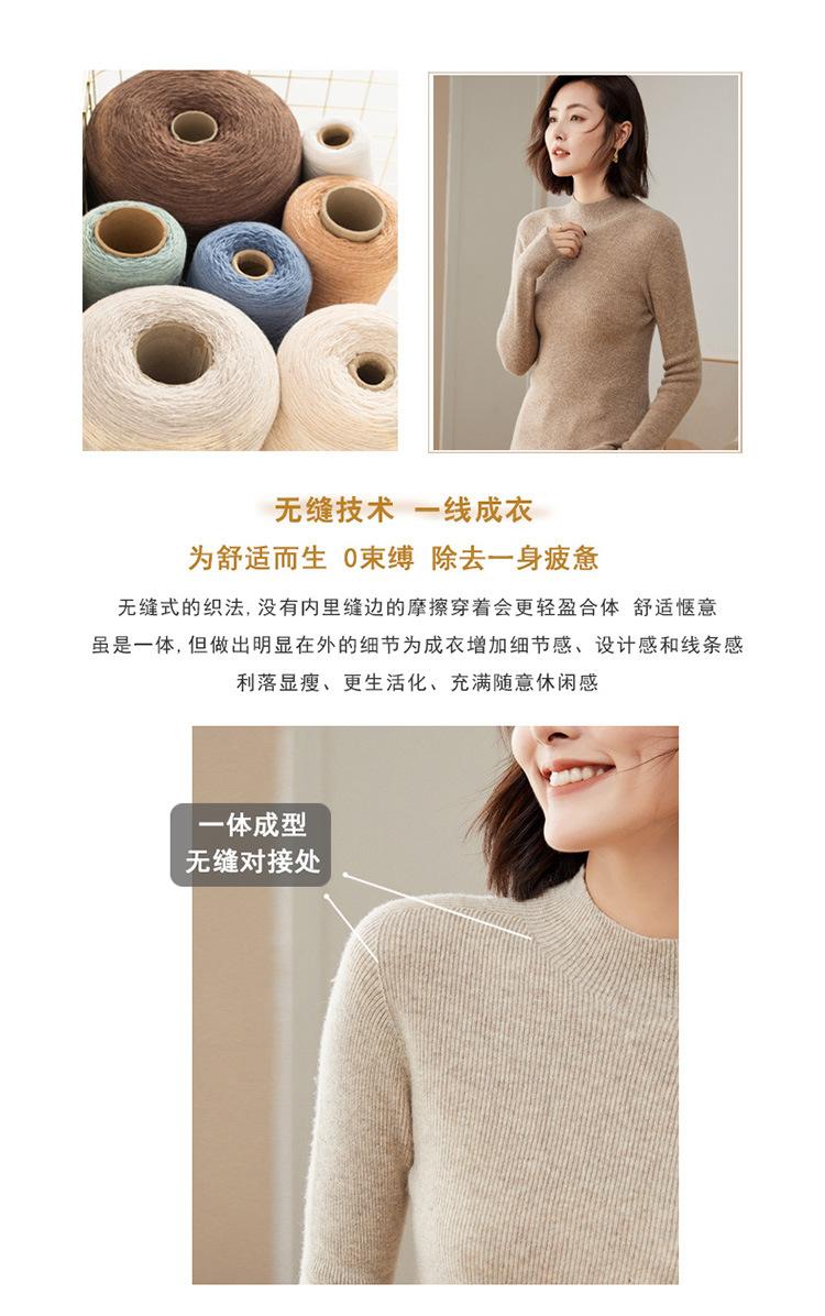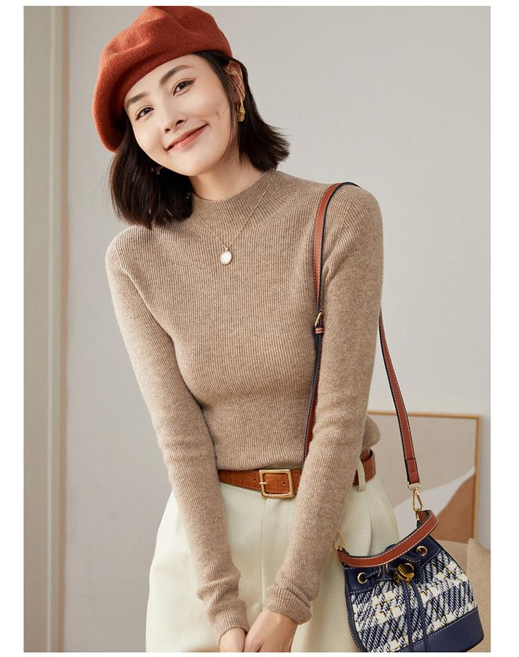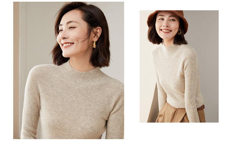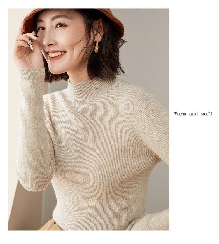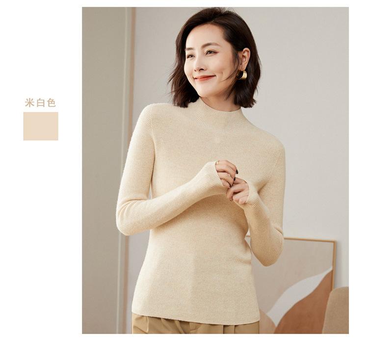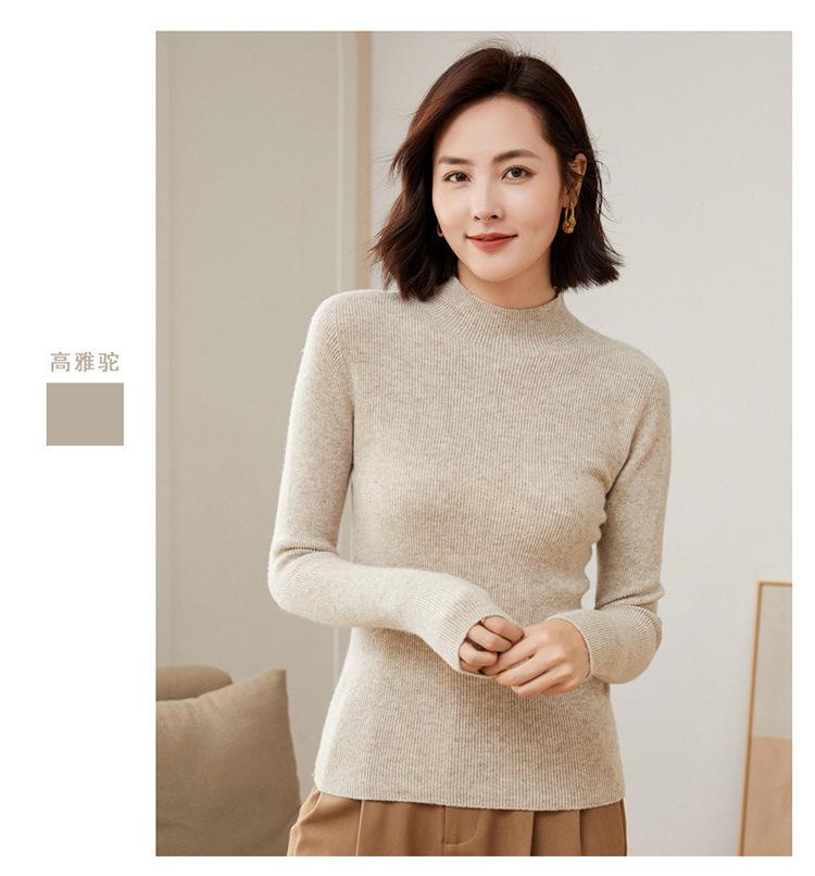 Otoño e Invierno Nuevo Suéter de Lana Entera Ropa de Primera Línea para Mujer Camiseta Base Seamless Cuello Medio Alto Tejido Ajustado Suéter de Cachemira Grueso