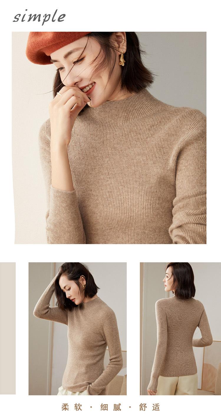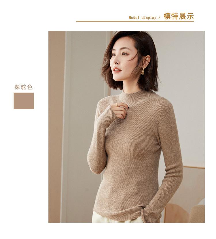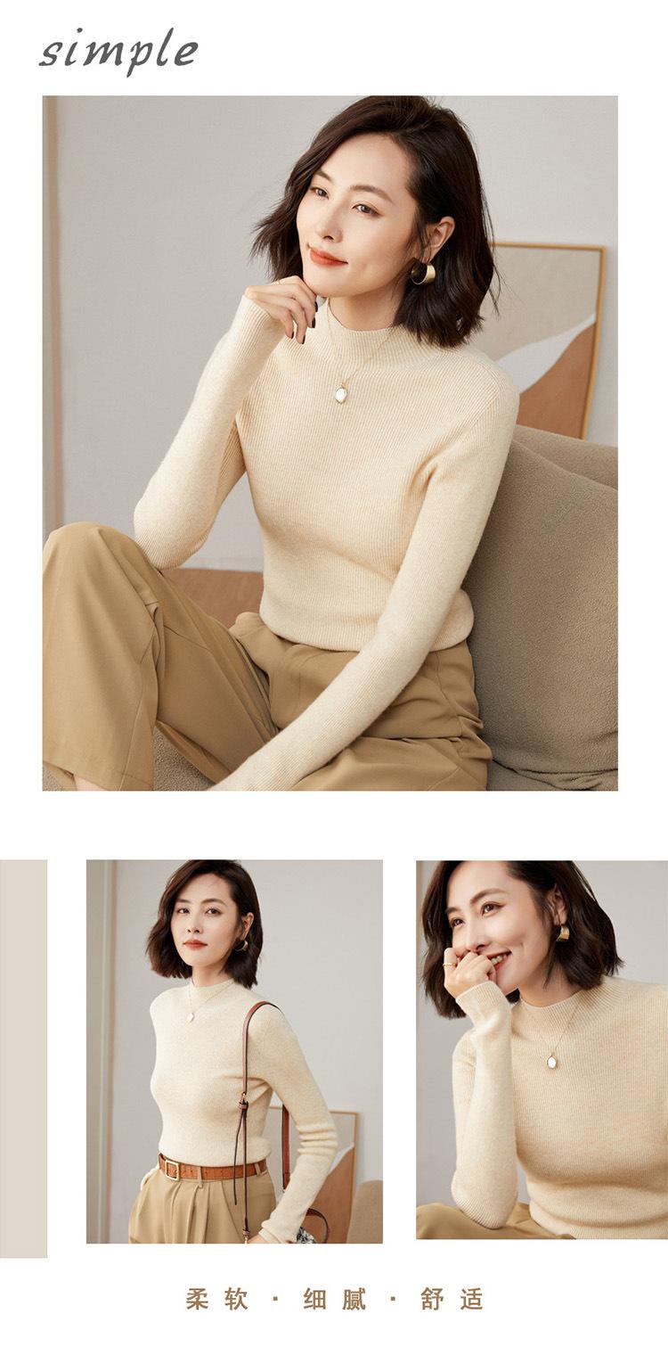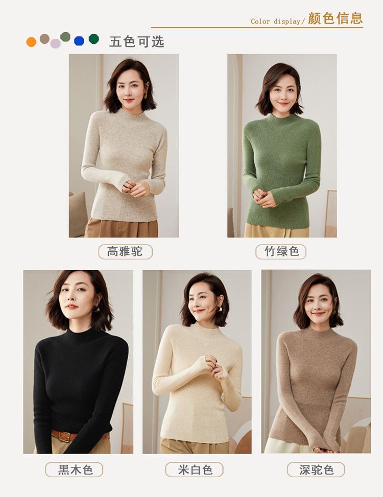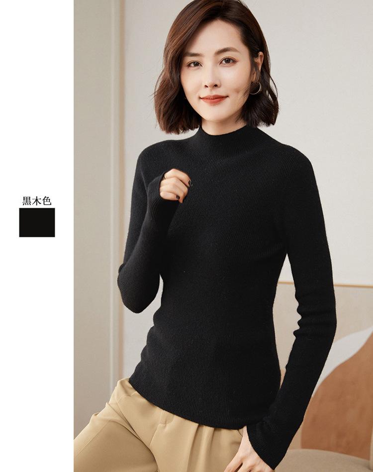 Otoño e Invierno Nuevo Suéter de Lana Entera Ropa de Primera Línea para Mujer Camiseta Base Seamless Cuello Medio Alto Tejido Ajustado Suéter de Cachemira Grueso