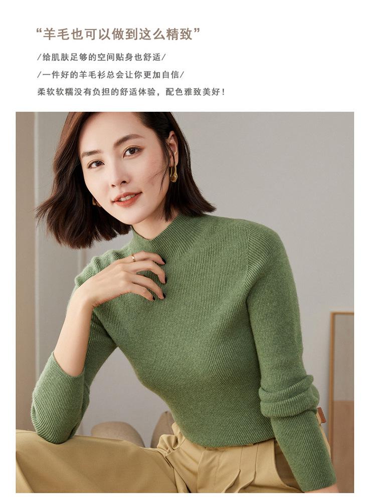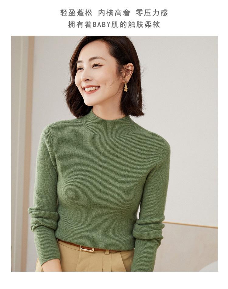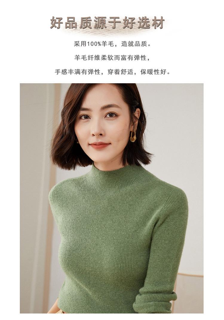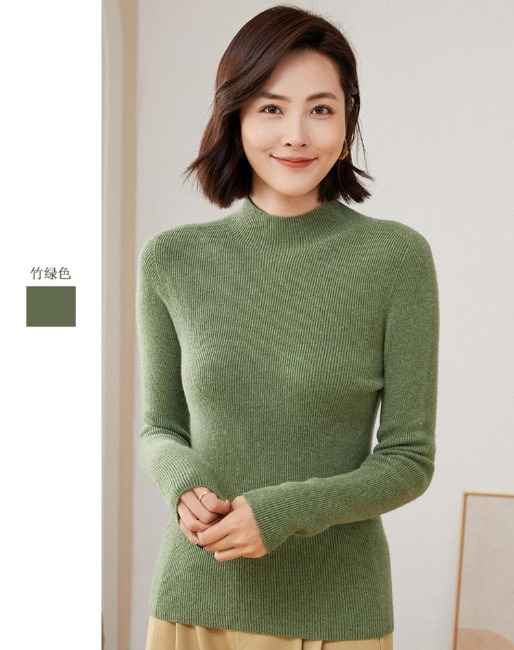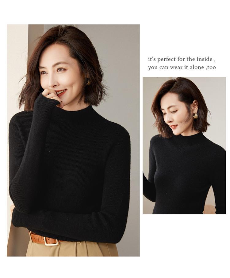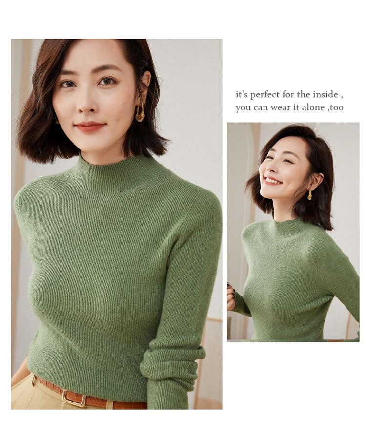 Otoño e Invierno Nuevo Suéter de Lana Entera Ropa de Primera Línea para Mujer Camiseta Base Seamless Cuello Medio Alto Tejido Ajustado Suéter de Cachemira Grueso