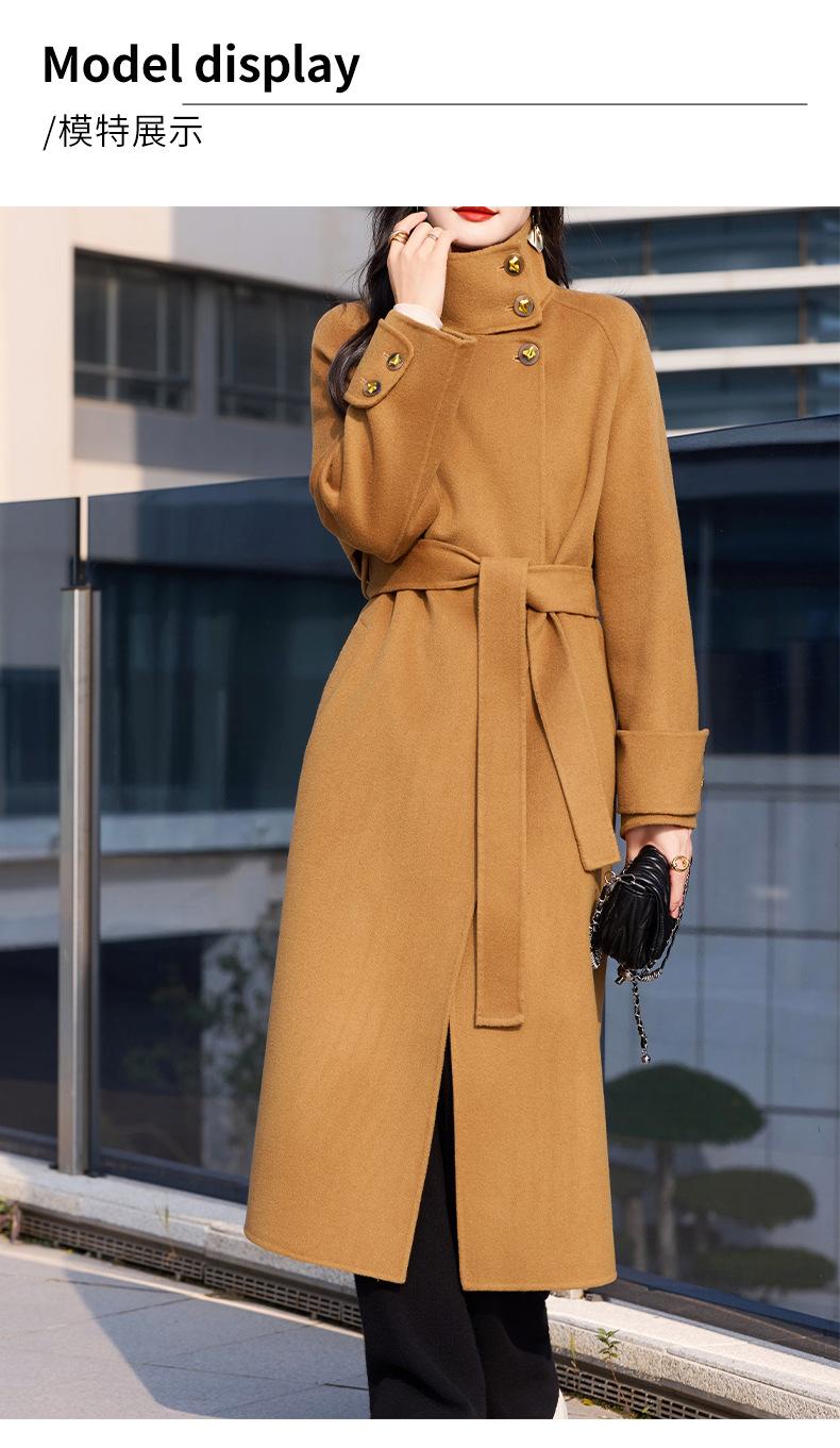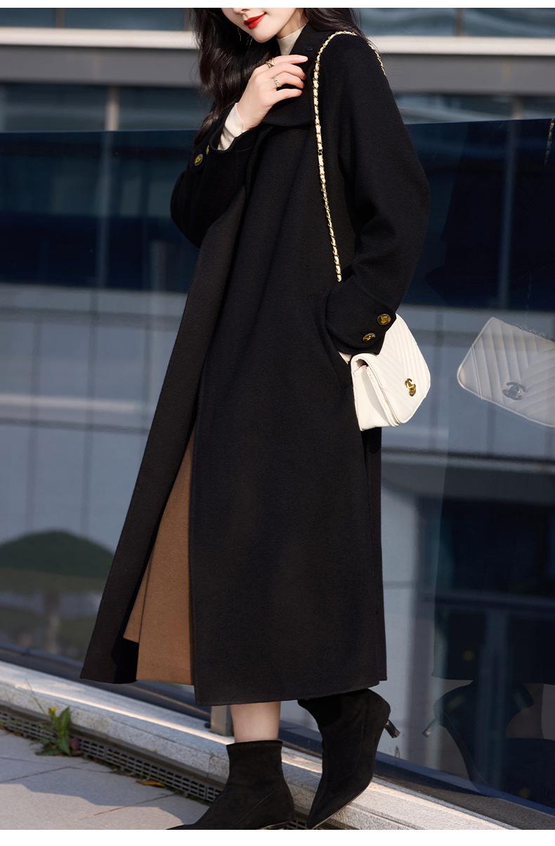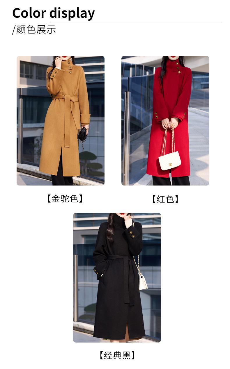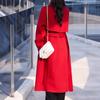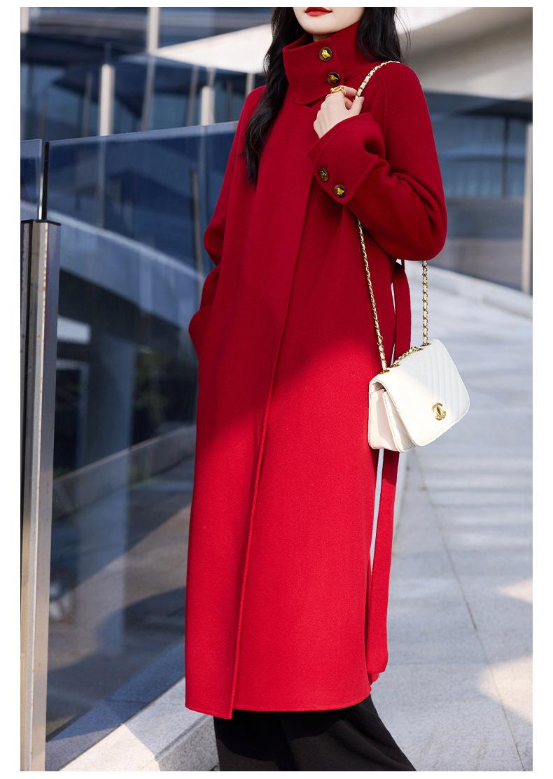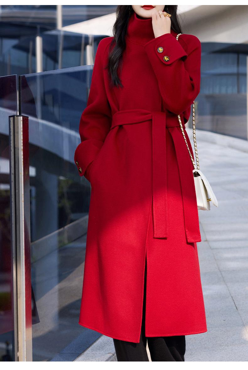 Abrigo rojo de mujer para otoño e invierno, nuevo abrigo de lana de alta gama de doble cara, largo medio hasta la rodilla, suelto.
