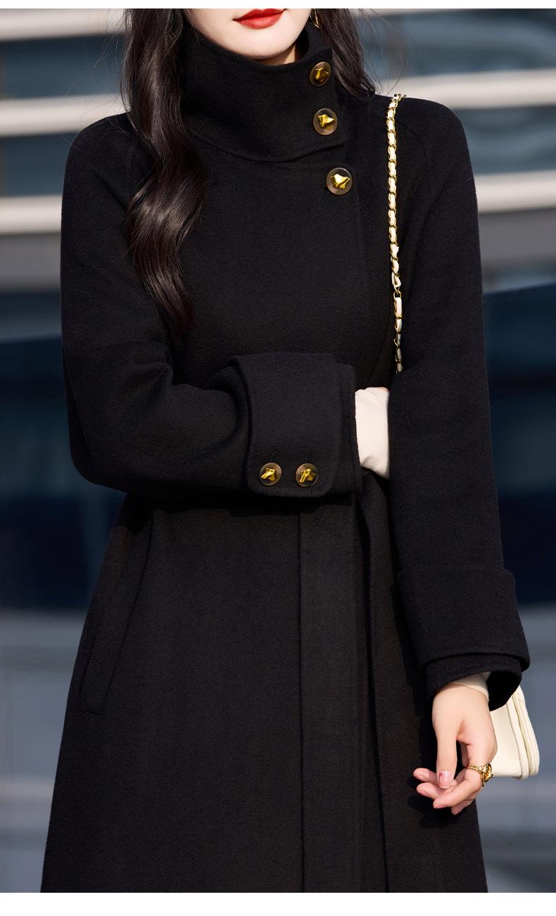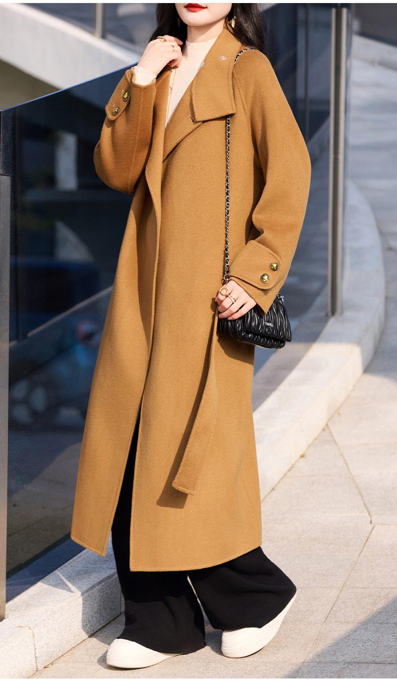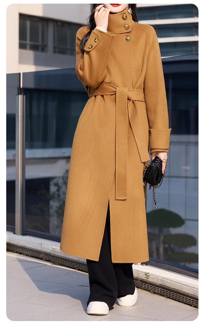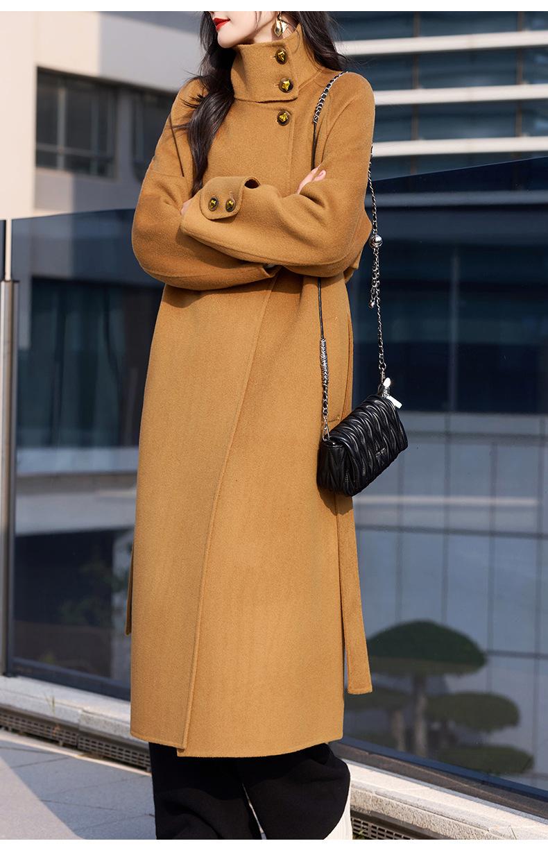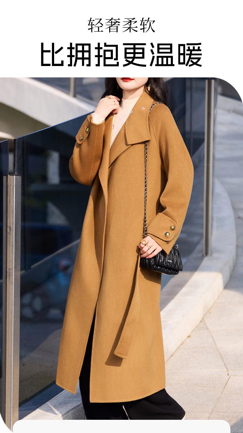 Abrigo rojo de mujer para otoño e invierno, nuevo abrigo de lana de alta gama de doble cara, largo medio hasta la rodilla, suelto.