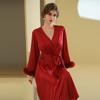 Vestido de Maquillaje de Novia de Boda para Mujer Clásico Bronceado Estampado Color Sólido Camisón Delgado Sexy Cárdigan de Dama de Honor Bata Matutina