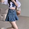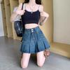 Falda Estilo Americano Chica Caliente Falda Plisada Dulce de Verano para Mujer Diseño Nuevo 2025 Falda Corta Línea A de Cintura Alta