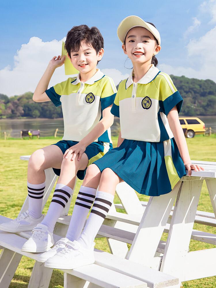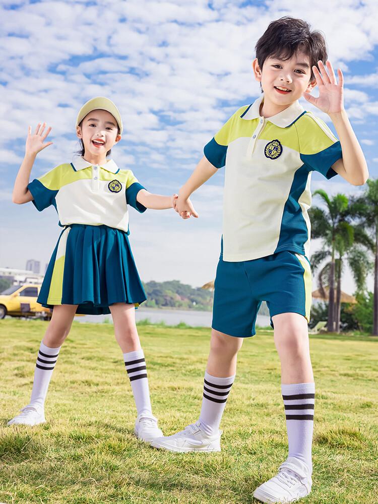 Uniformes de jardín de niños, Uniformes de verano, Uniformes de escuela primaria, Uniformes de clase de manga corta de algodón puro de verano para niños, Disfraces para presentaciones escolares