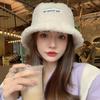 Sombrero de Mujer Rojo de Internet Felpa de Cordero Sombrero de Pescador Otoño e Invierno Estilo Coreano Moderno Cara Pequeña Nuevo Cálido Combinable Sombrero de Cubo Estilo Japonés
