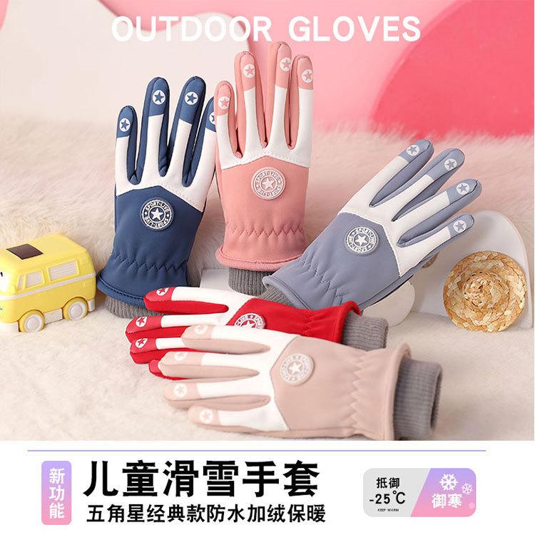 Guantes de montar para niños de otoño e invierno, para ciclismo al aire libre, de terciopelo, cálidos, a prueba de viento, con palma fría, resistentes al desgaste y antideslizantes A03-YS