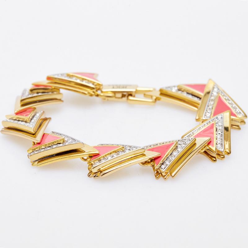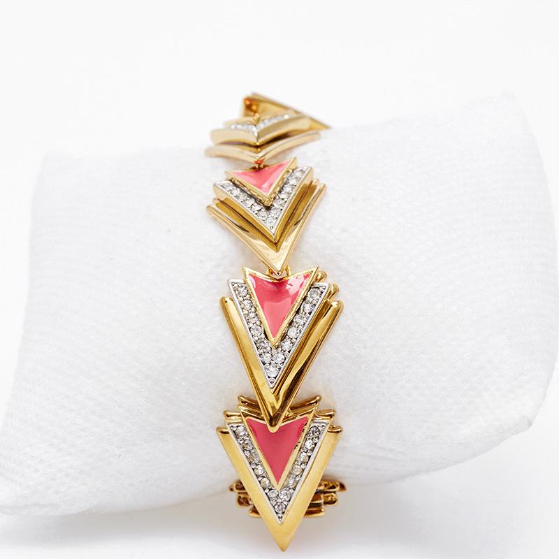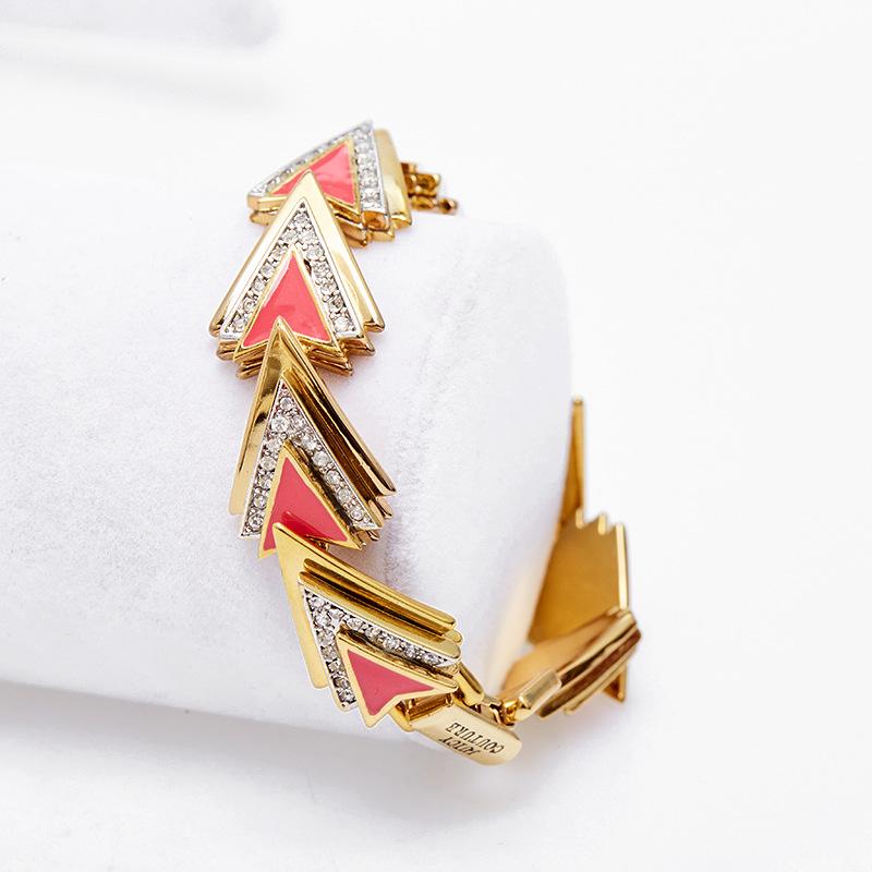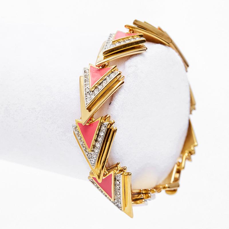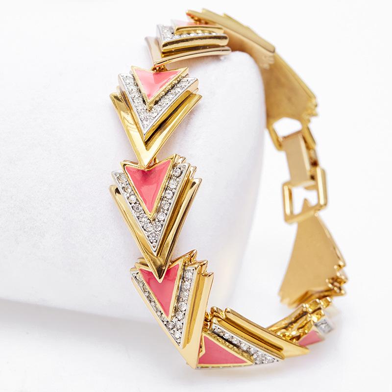 Pulsera al por mayor Estilo Cool Moda Diamante Triángulo Abrir Pulsera Elegante Nicho Versátil Chapada en Oro para Mujer