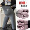 Pantalones de embarazada con forro polar de invierno, leggings gruesos sin forro polar para embarazadas, pantalones de algodón cálidos de otoño e invierno, pantalones de color sólido que combinan con todo.