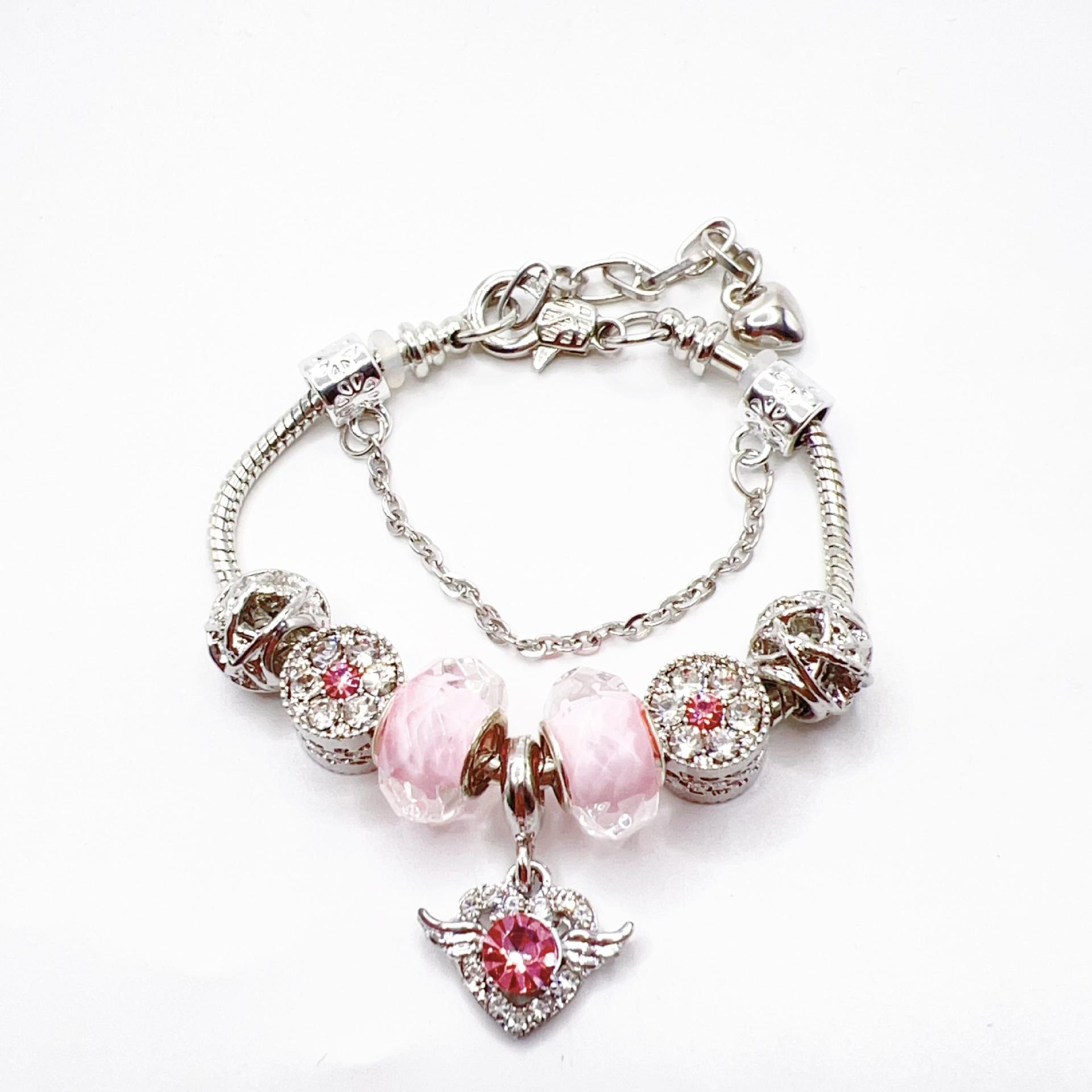 Pulsera con colgante de alas de amor rosa transfronterizas de Panjia, con diamantes completos, transmisión en vivo, moda al por mayor, ajustable en Amazon