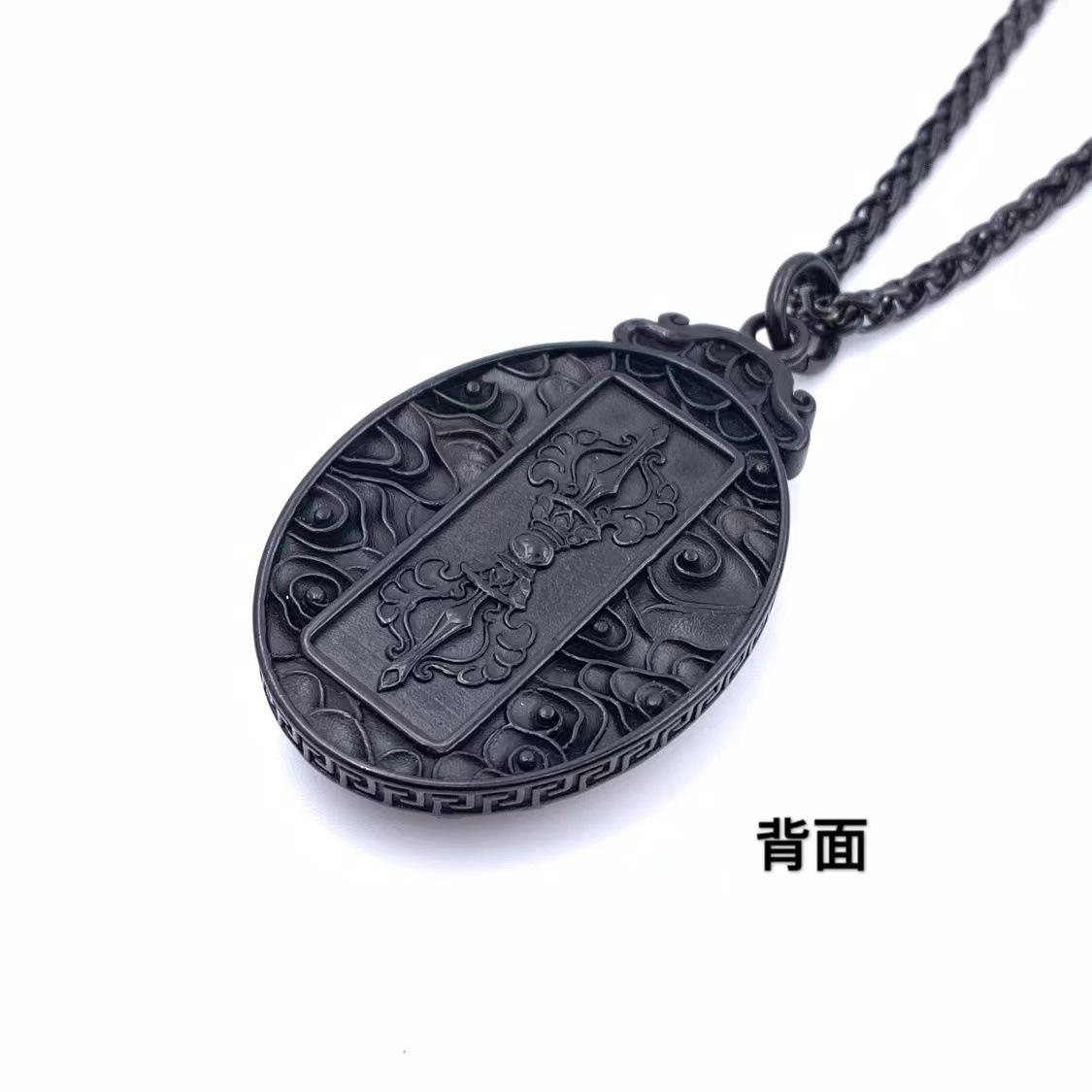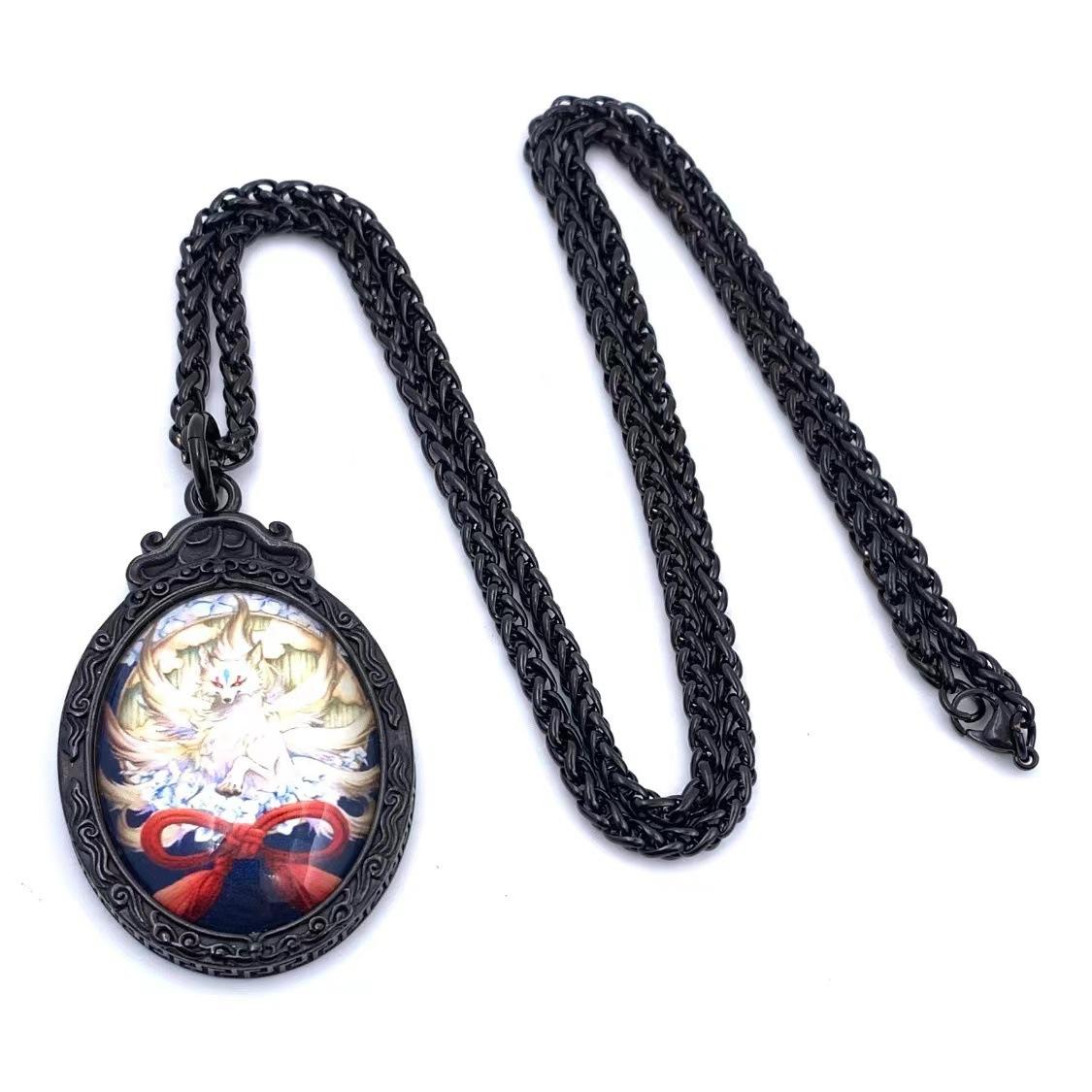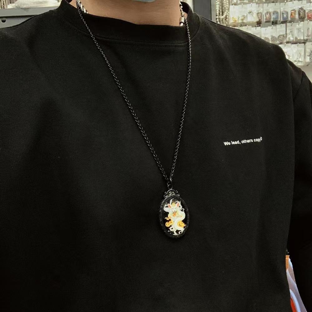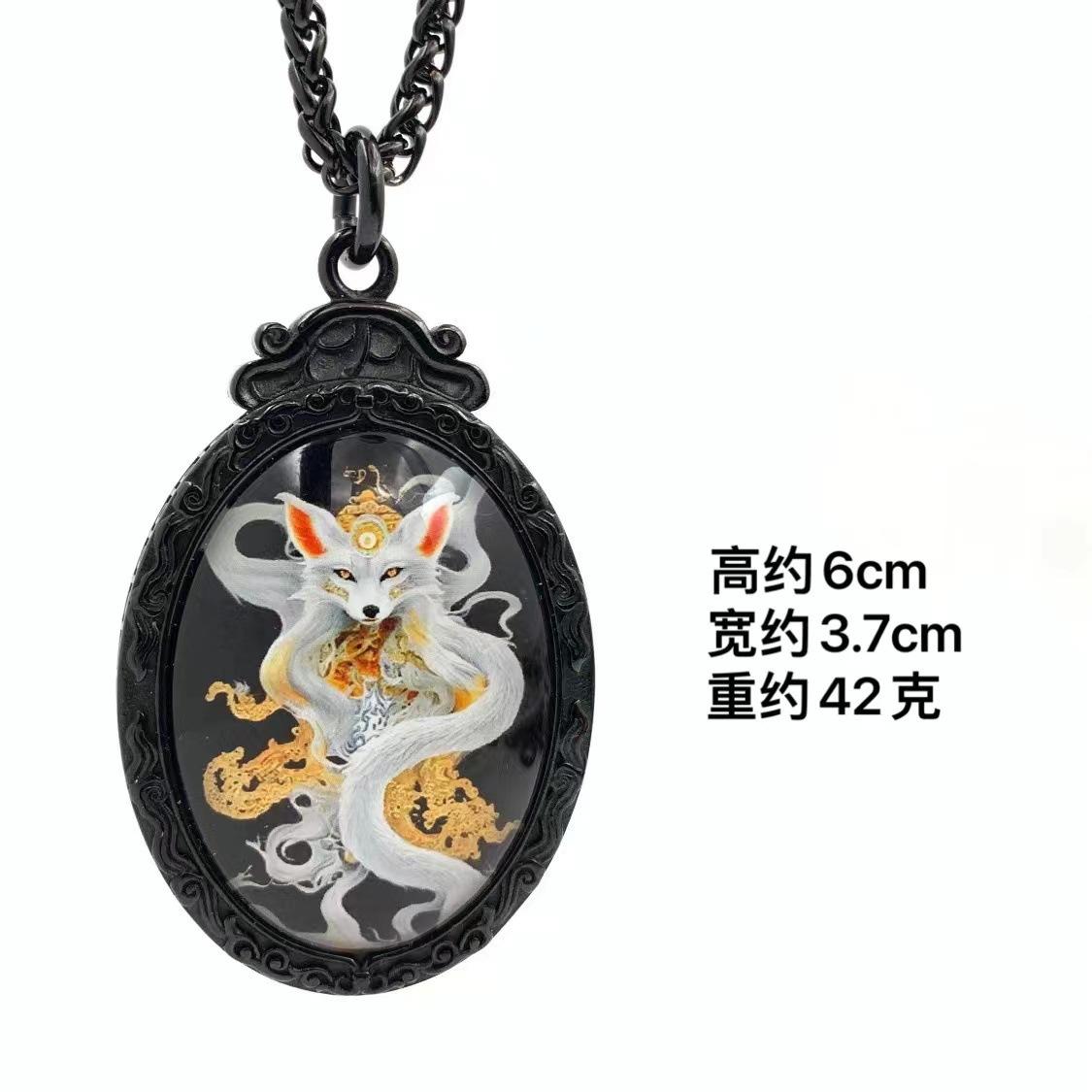 Nuevo estilo nacional, colgante de tarjeta negra de acero de titanio con diseño de zorro de nueve colas pintado thangka para niña, cadena de suéter de moda con personalidad moderna