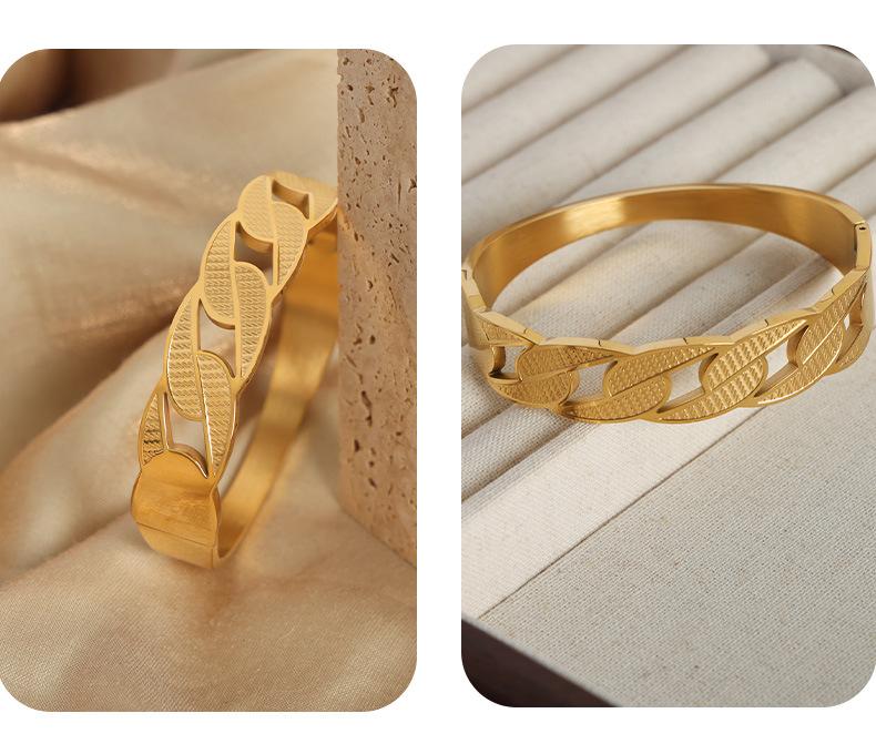 Nueva moda transfronteriza europea y americana diseño de nicho simple lujo ligero acero de titanio chapado en oro de 18 quilates cadena pulsera personalizada joyería