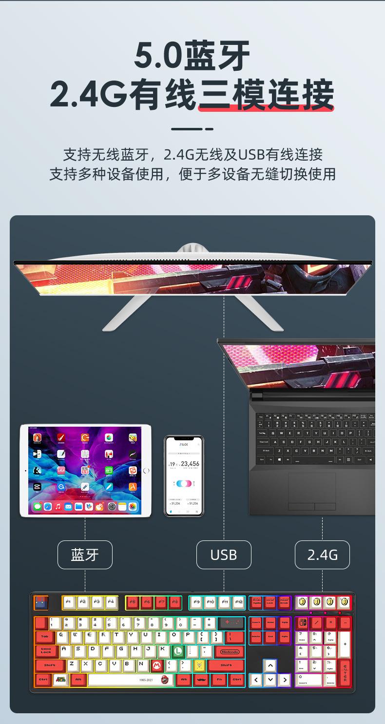 Teclado Mecánico Inalámbrico Bluetooth con Cable de Tres Modos de 108 Teclas Juego E-Sports Oficina Base de Eje Personalizado Intercambiable en Caliente RGB