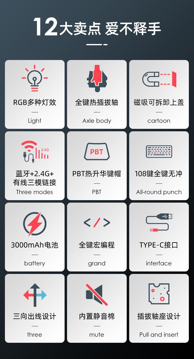All White (wireless three-mode-shaft seat hot plug-RGB light)