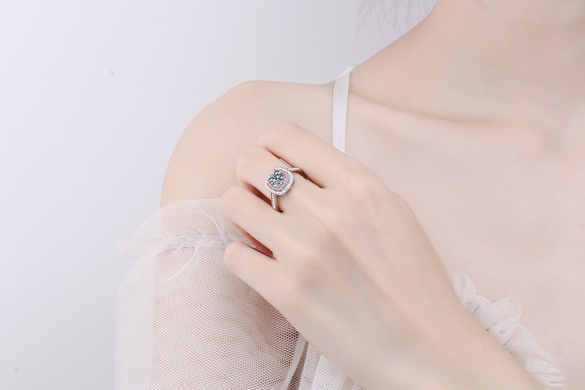 Anillo de moissanita con diamantes de 1 quilate para mujer, sortija de boda, 925, con bolsa cuadrada, venta directa de fábrica