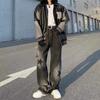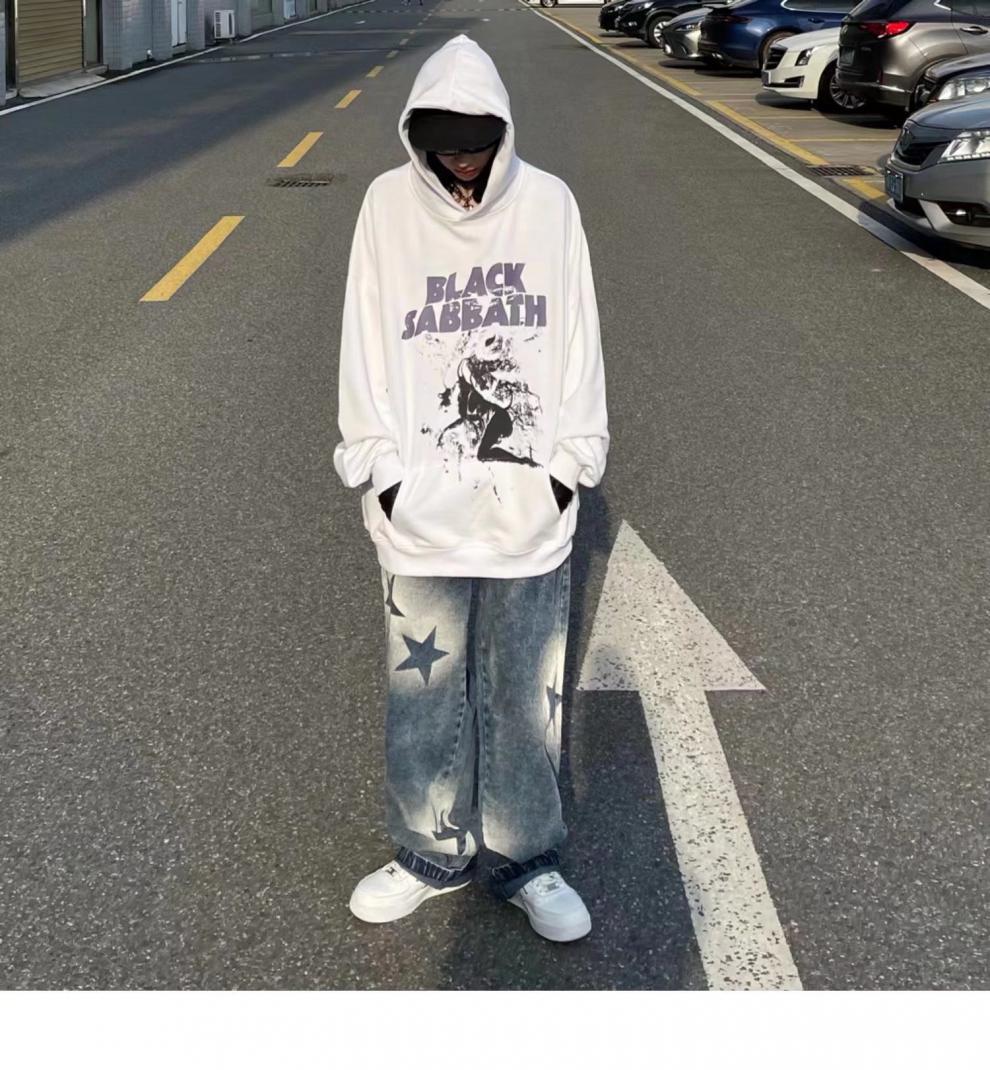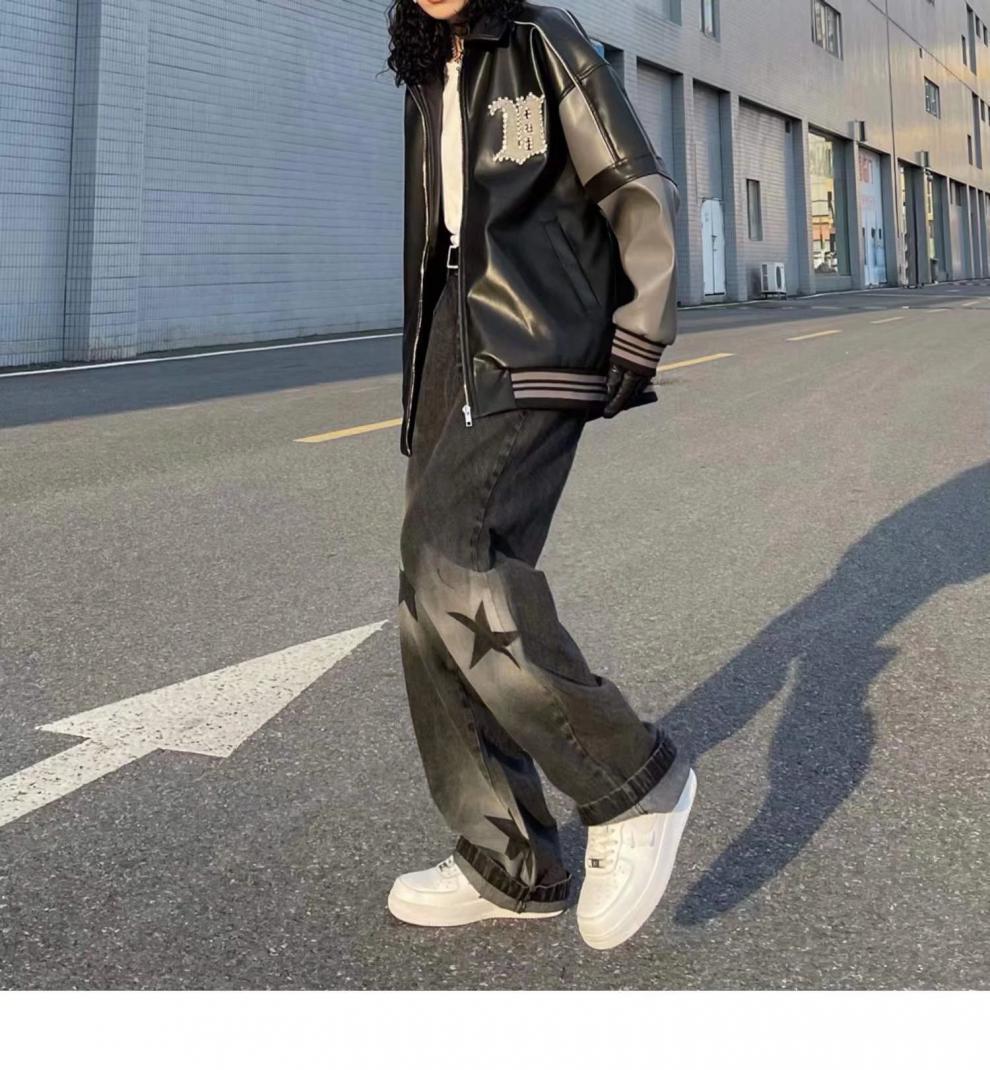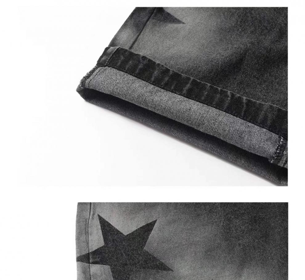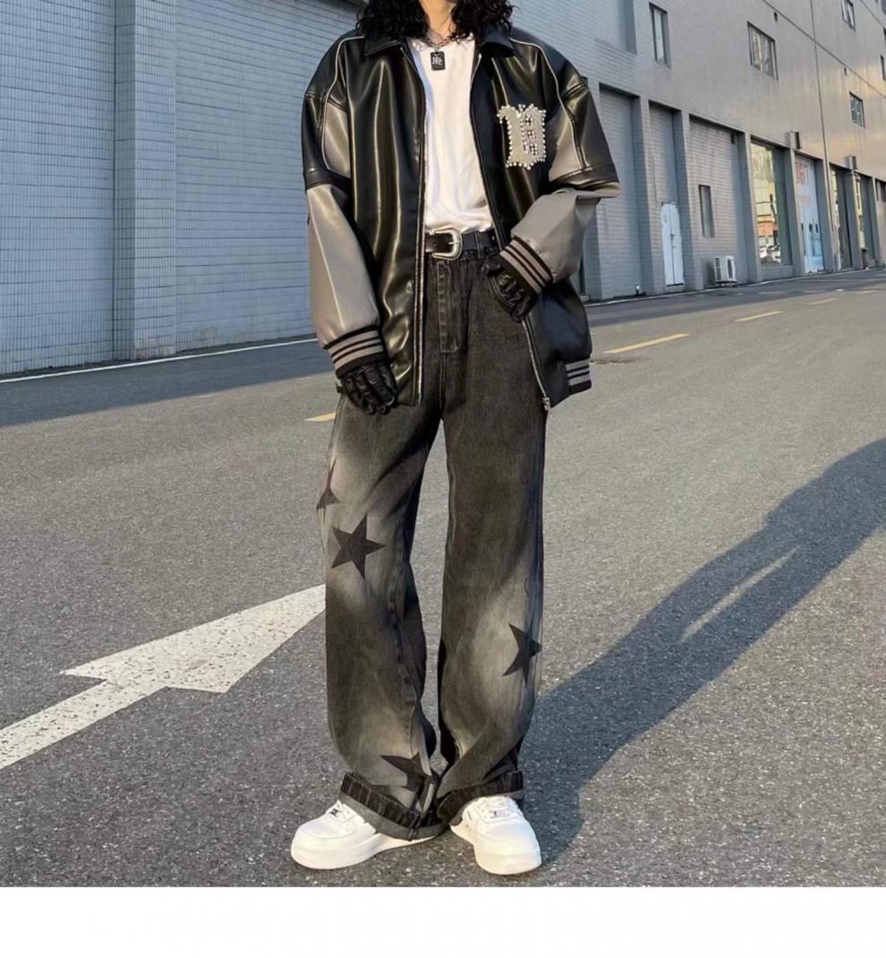 Pantalones Vaqueros Rectos Casuales Europeos y Americanos de Alta Calle Marca de Moda Estrella de Cinco Puntas Pantalones de Pierna Ancha para Hombres y Mujeres Talla Grande Trendy Frito Callejero