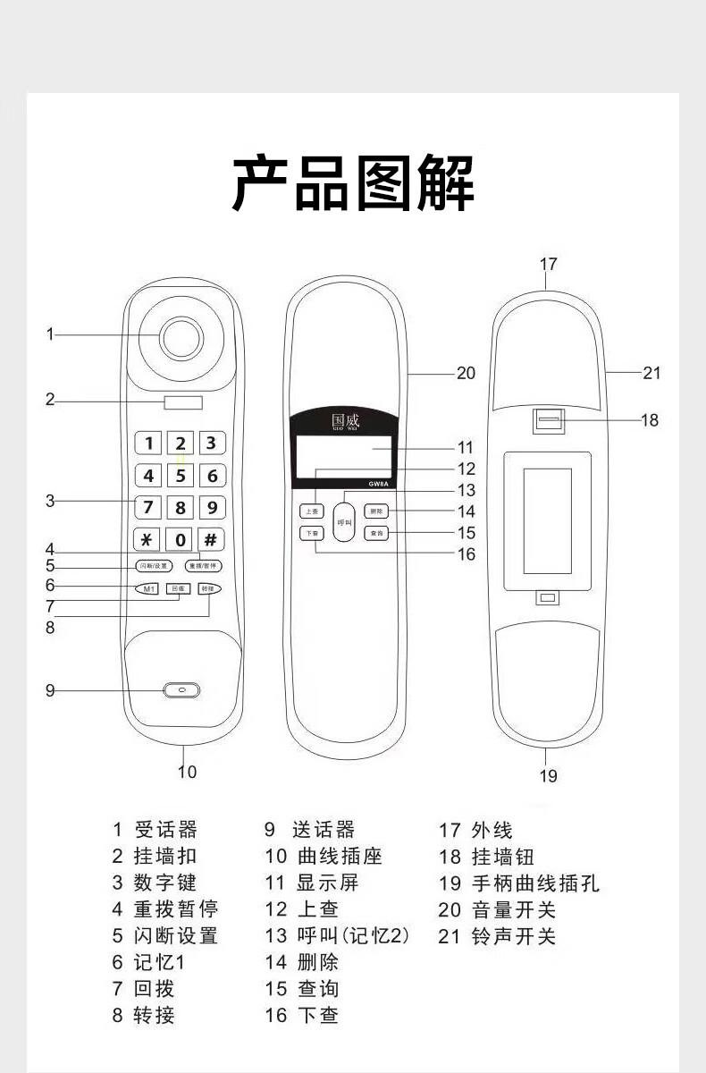 Guowei (GUO WEI)GW8A teléfono fijo teléfono de pared hotel hotel máquina de pan pequeño para colgar