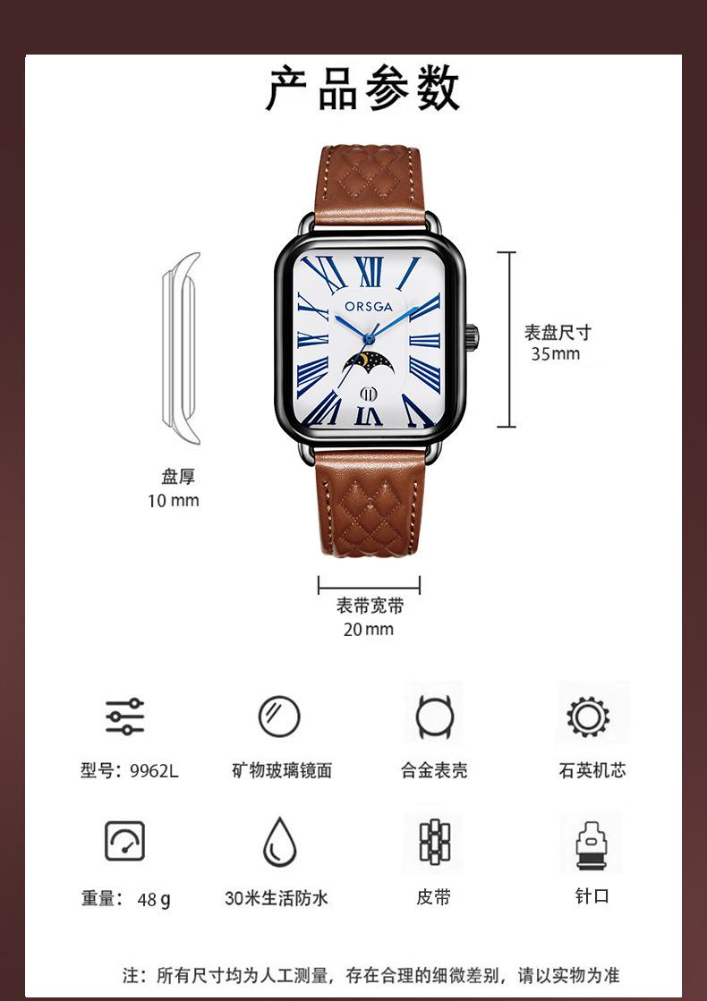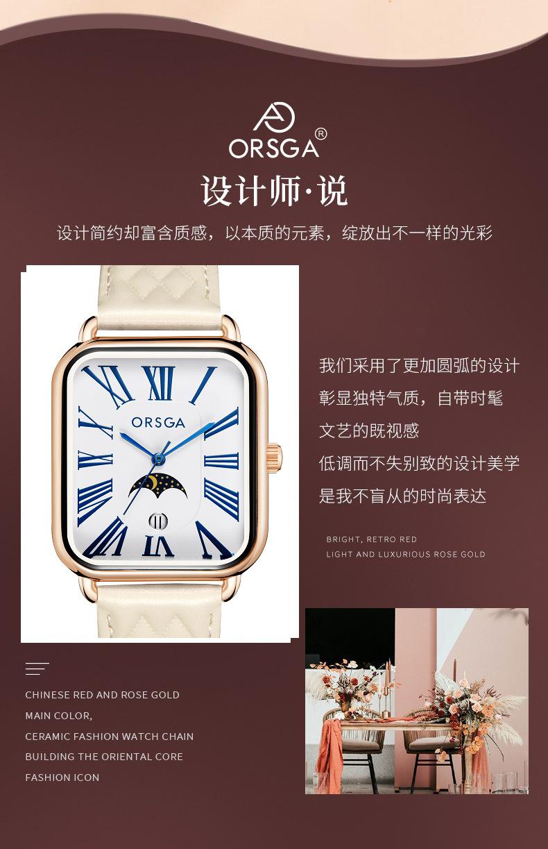 Reloj de moda ORSGA para mujer, Square Rome Live, fábrica de comercio exterior transfronterizo, reloj de cuarzo informal de alta gama para mujer