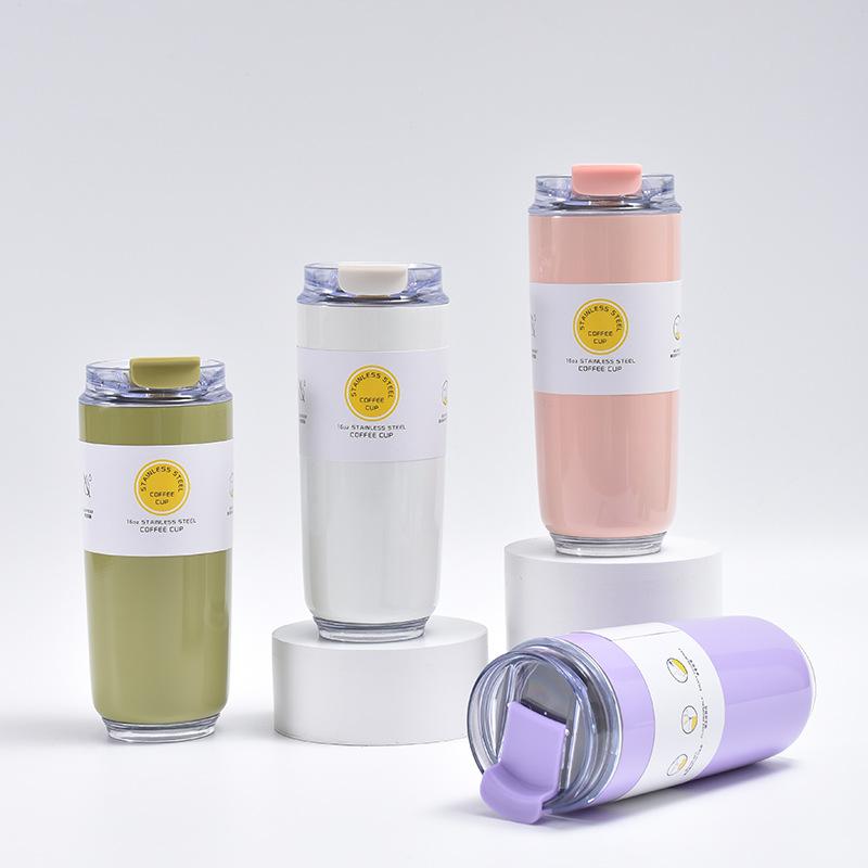 Nueva taza de café sencilla de alto valor para niñas, taza portátil con tapa para bebidas directas, taza de regalo de doble vacío, venta al por mayor