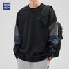Suéter pesado de marca de moda retro estadounidense para hombre, con costuras de cuello redondo, para otoño e invierno, nuevo suéter informal holgado con parte inferior.