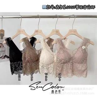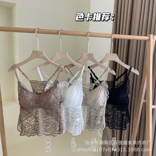 6060 Primavera y Verano Color Bosque Encaje Francés Hermosa Espalda Escote en V Ropa Interior de Seda Ropa Exterior de Mujer Top de Tubo Sexy sin Espalda Grande para Mujer