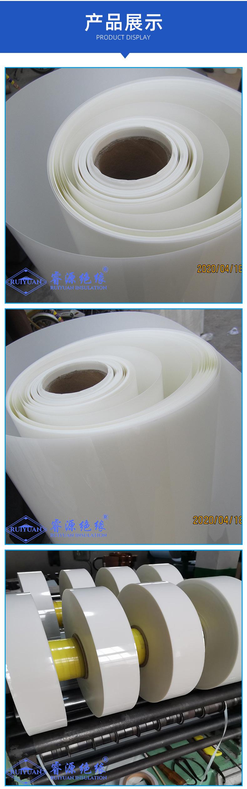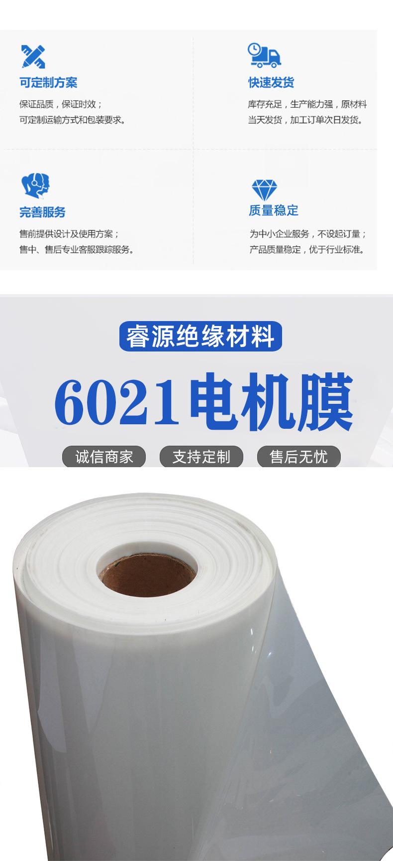 Características y usos:La película para motor 6021 blanca lechosa tiene excelentes propiedades de resistencia eléctrica, mecánica, al calor y química. Se utiliza como material aislante para motores, condensadores, bobinas y cables y ahora se usa ampliamente en la industria del aislamiento eléctrico.
